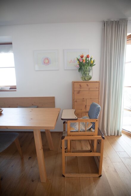 Lyžařské vybavení nebo horská kola lze umístit do extra uzamykatelného prostoru. Pro malé děti rádi, pokud je to třeba, přichystáme v bytě dětskou postýlku a vysokou židli.