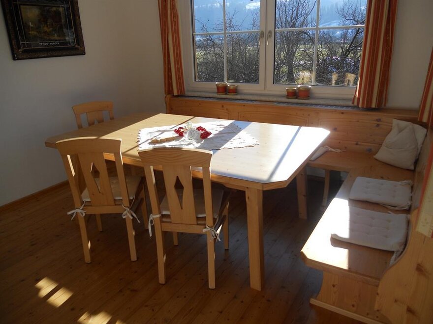 Ideální je náš láskyplně zrenovovaný, útulný farmářský dům také pro větší skupiny a rodiny, protože máme k dispozici samostatnou velkou společenskou místnost pro naše hosty.