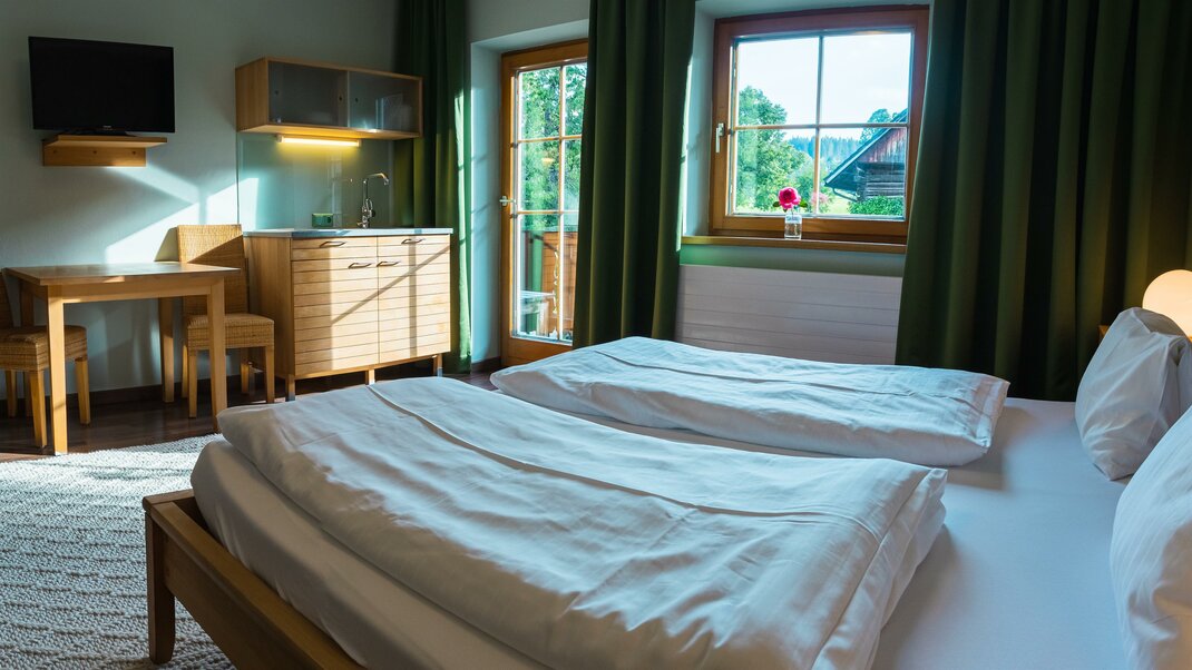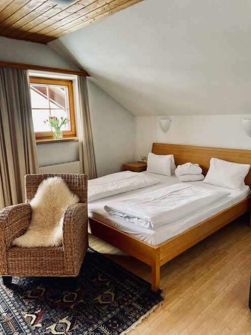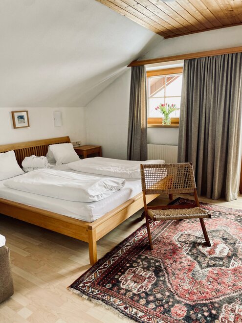 Pohodlné bydlení na biofarmě Bacherhof je jednou z nejkrásnějších věcí v životě. Pro naše hosty nabízíme různé typy pokojů, jako jsou dvoulůžkové, třílůžkové, rodinné pokoje a apartmány pro 2-5 osob s krásným výhledem na Schladminger Tauern. Všechny světlé, přátelské tematické pokoje jsou zařízeny podle naší filozofie „Zelená Země“.