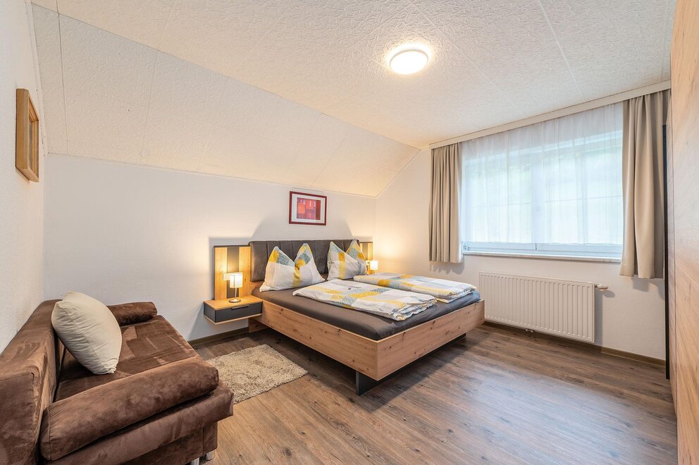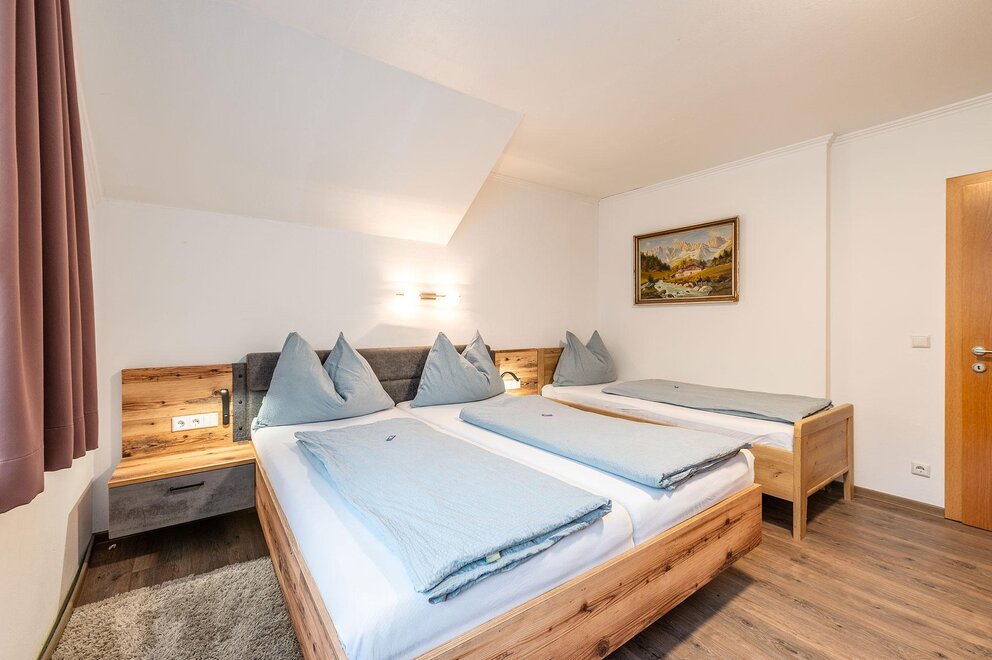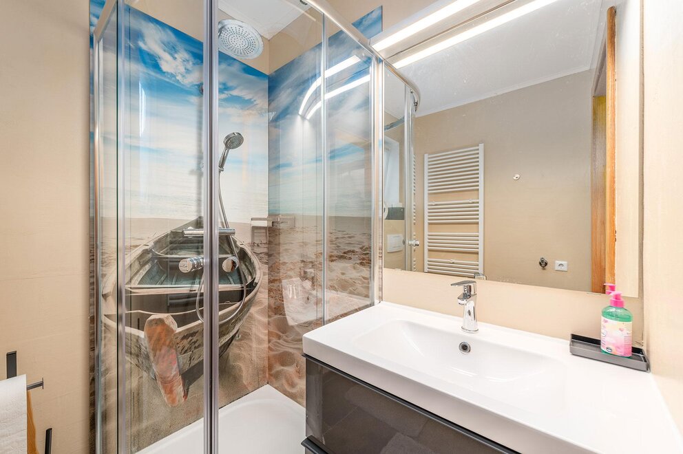 Apartmán o rozloze 55 m² se nachází v přízemí a nabízí ubytování pro až šest osob. Dvě útulné ložnice s manželskými postelemi (každá 160 cm) a poschoďová postel se dvěma samostatnými postelemi (každá 90 cm) zajišťují pohodlné noci.