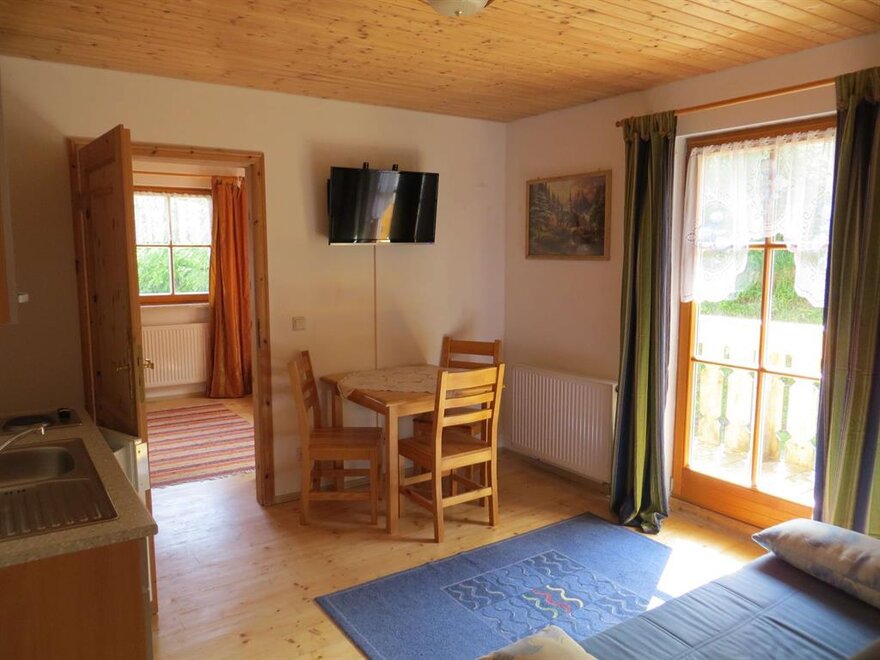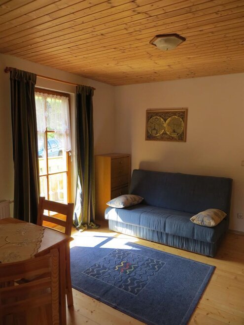 App. 2-3 os. + sprcha/WC ložnice, manželská postel a skříň, samostatná místnost s malou kuchyní, rozkládací pohovka, TV, + sprcha/WC