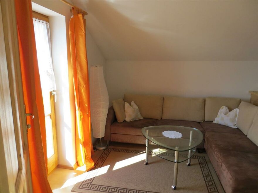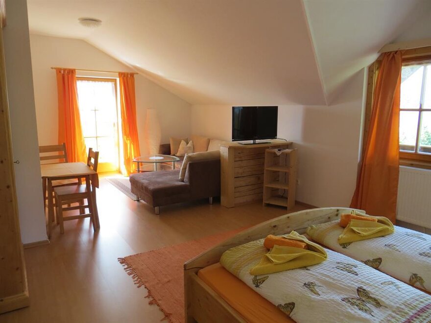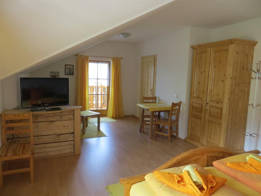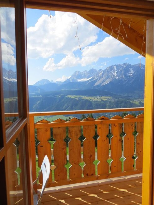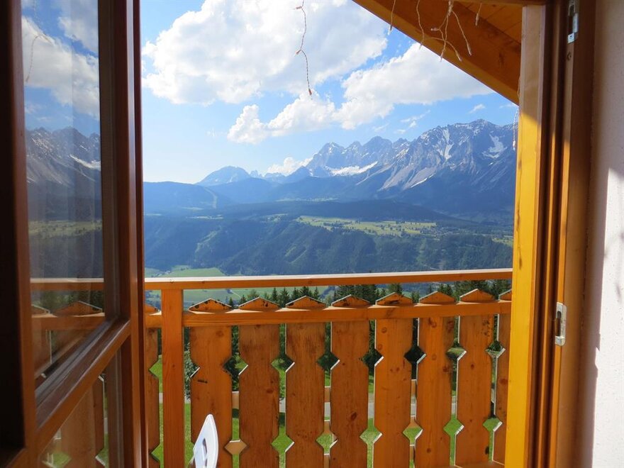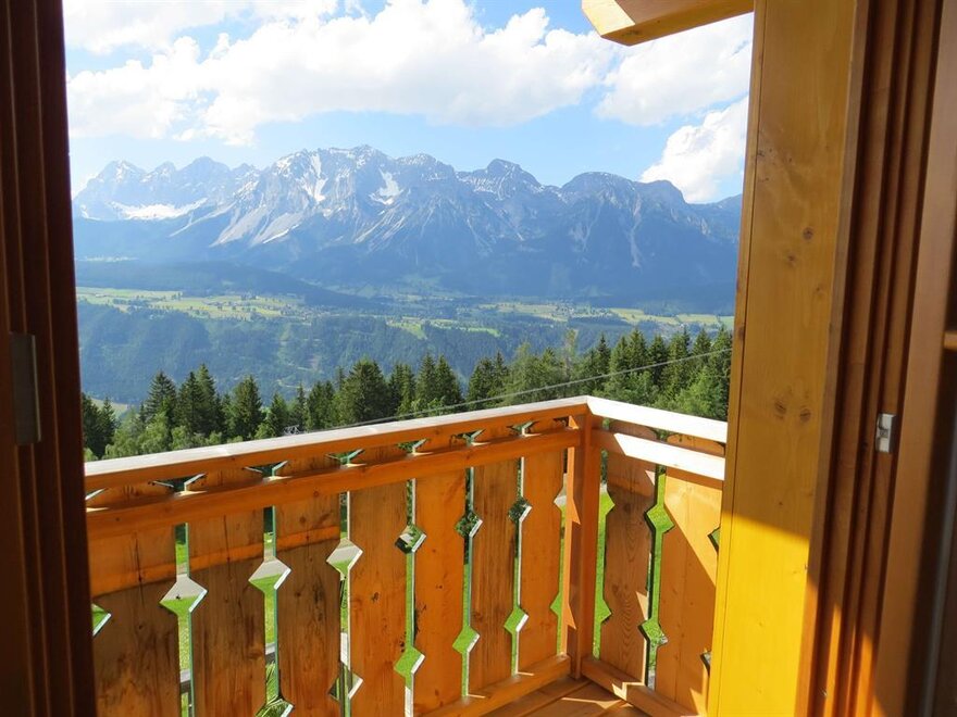 Krásná podkrovní studia s manželskou postelí, obývací prostor, prostorná bezbariérová koupelna, nádherný výhled na celé pohoří Dachstein