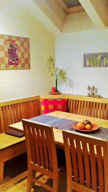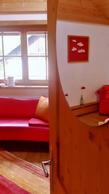 Apartmáne Loft má 130 m² (2 úrovně) a je velmi kvalitně zařízen a vybaven. Má vlastní vchod ze nádherné - v zimě klidné - zahrady. Z parkovacího stání (1 bezplatné parkovací místo) se dostanete suchou nohou do apartmá. Bylo postaveno podle zásad biosloudu. Ve velké jídelně, obývacím a spací prostoru se nachází vyhřívaná kachlová kamna. Na vyvýšené úrovni (22 m²) se nachází postel (180 cm), která může být využívána k odpočinku a spaní. Skilifty jsou dostupné pěšky za 5-10 minut. (Sklad na lyže). Železniční stanice a autobusové zastávky v blízkosti. V létě cyklostezka Ennstal vede kolem domu.