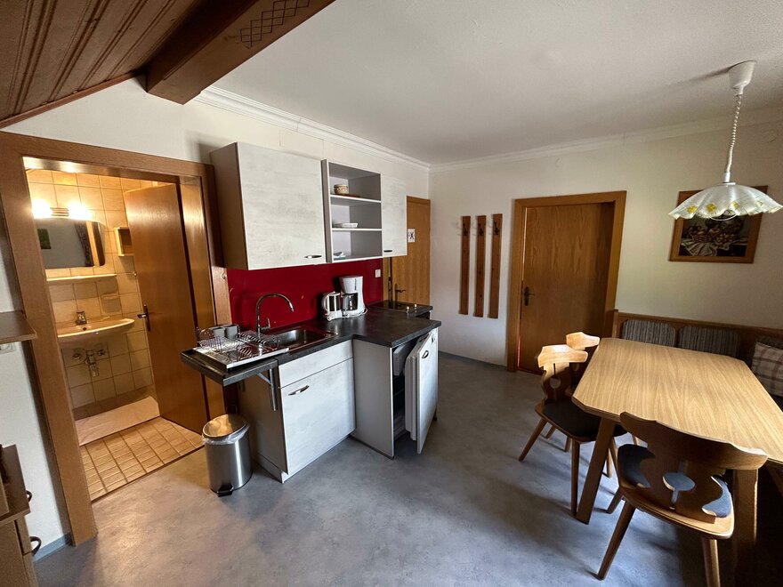 Naše útulné prázdninové apartmá se nachází v 1. patře s terasou, kompletně zařízeným kuchyňským koutem. Sprcha a WC jsou oddělené.