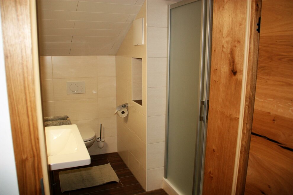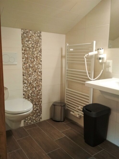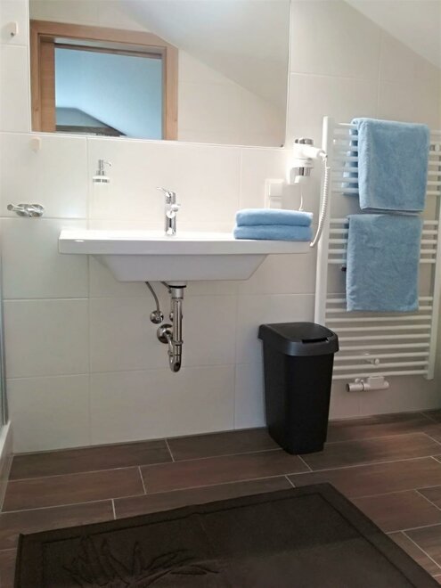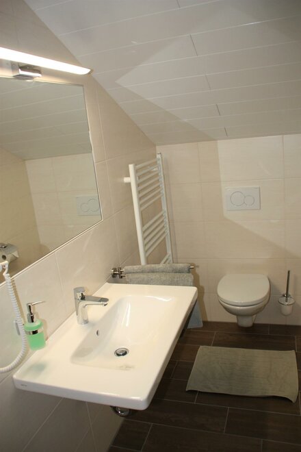 Vlastní koupelna se umyvadlem, sprchou a WC.