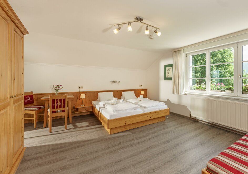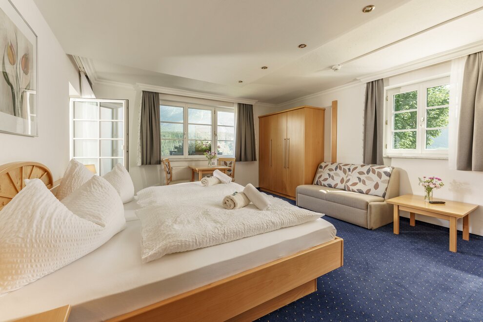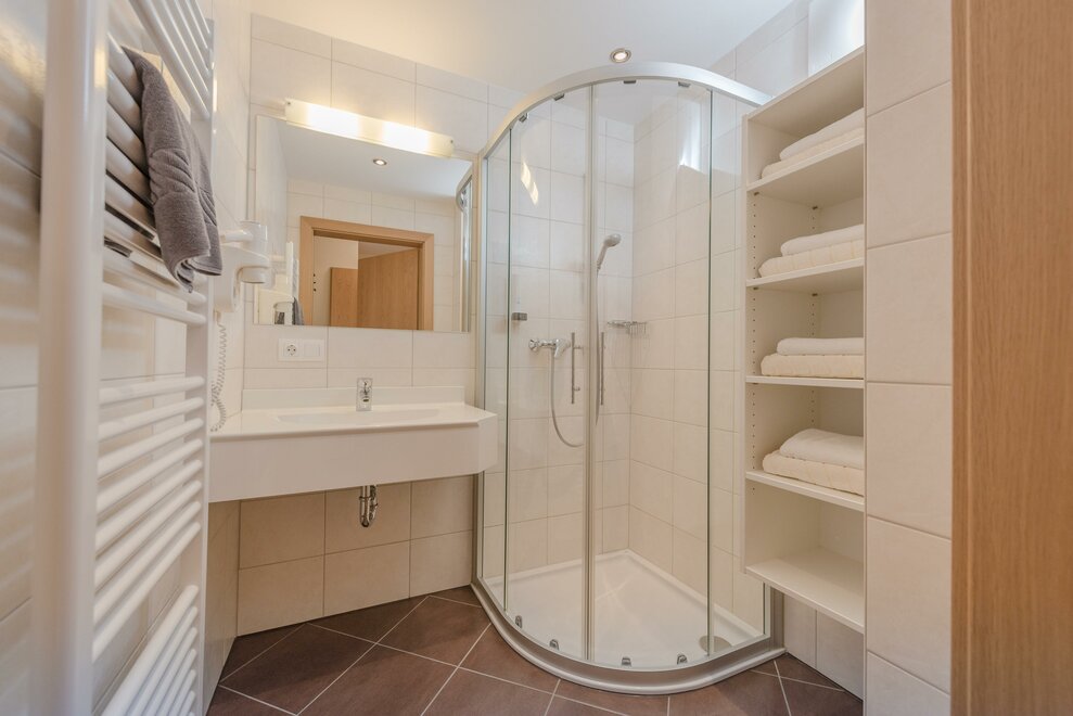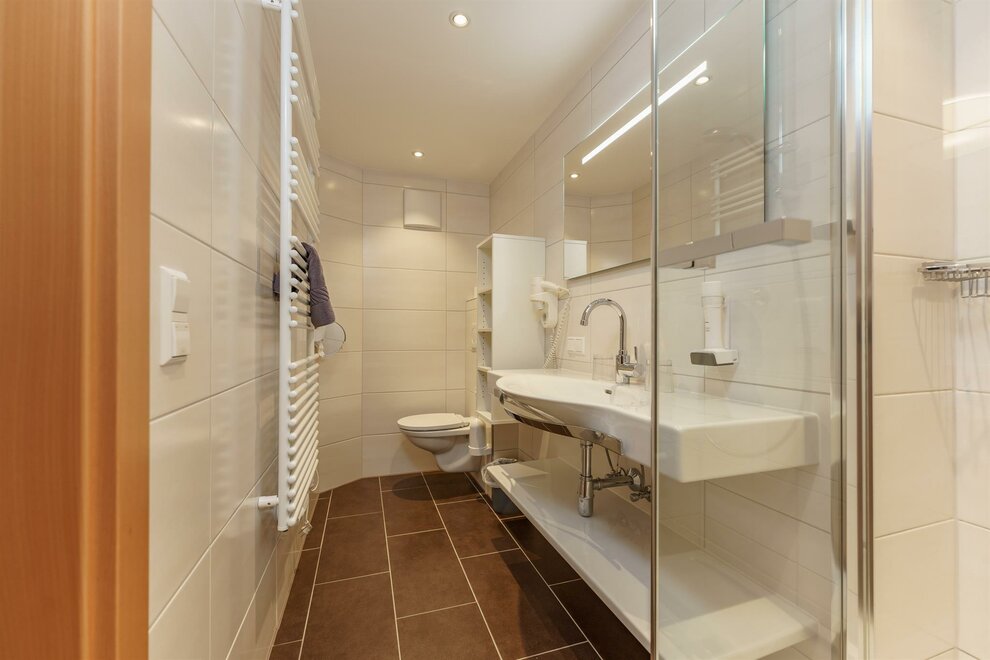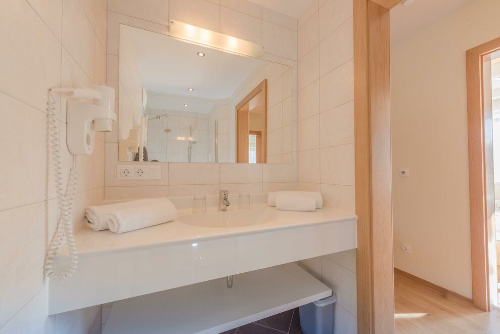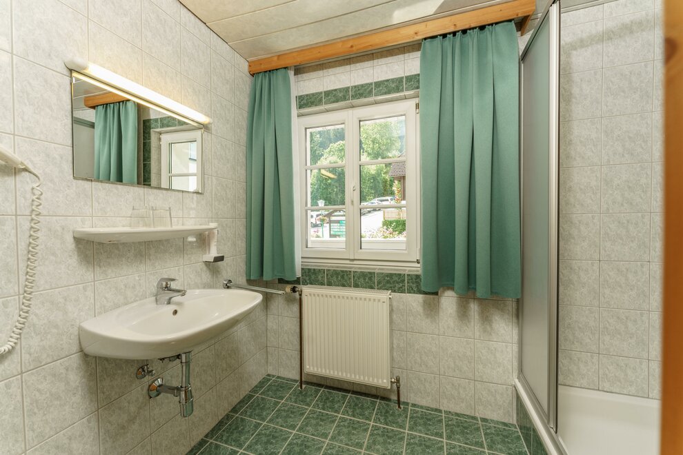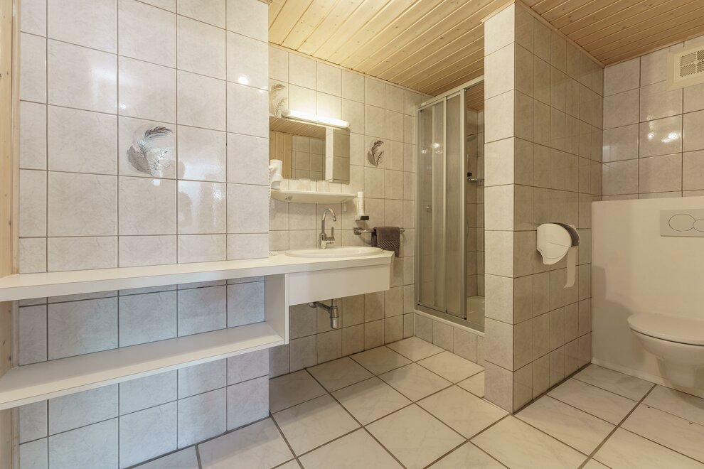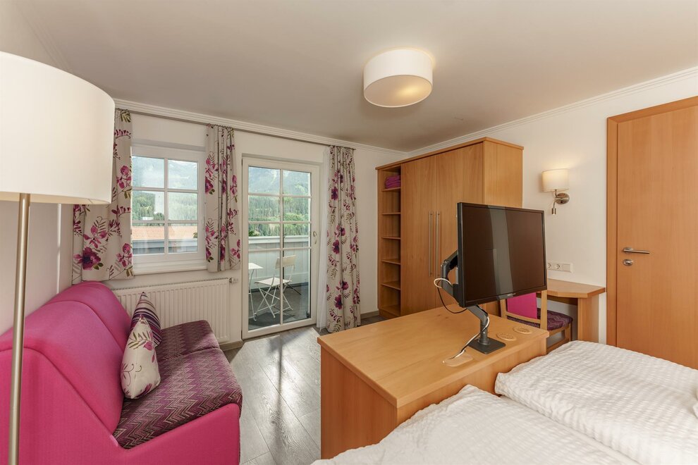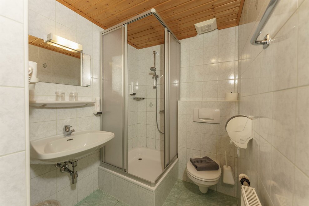 Comfort room with shower / toilet, hair dryer and cable / TV, free Wi-Fi, all rooms with large balcony and with a panoramic view of the beautiful Enns Valley and the Dachstein mountains.