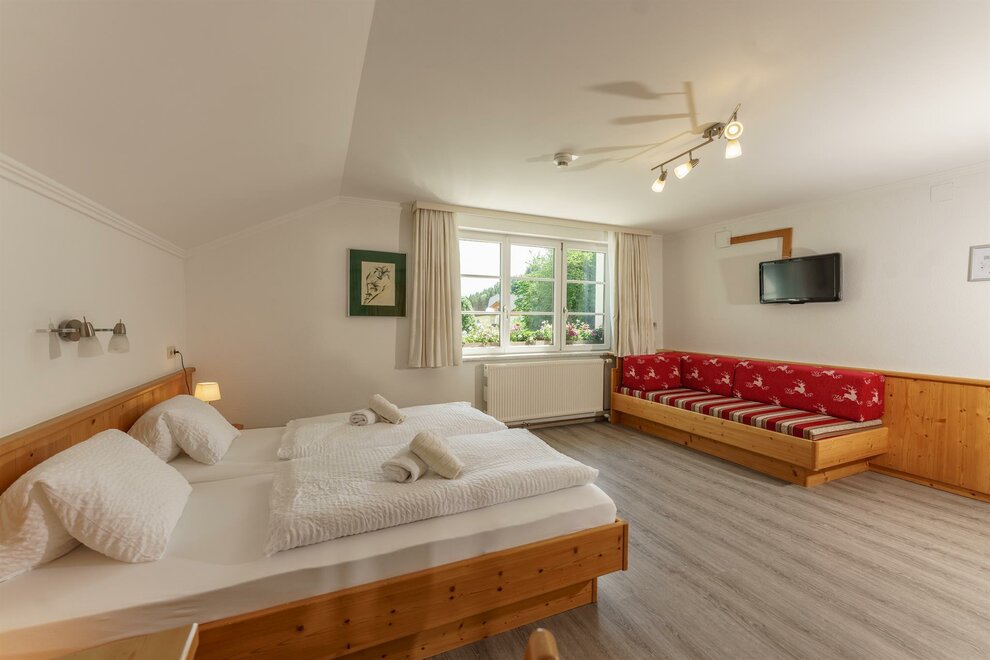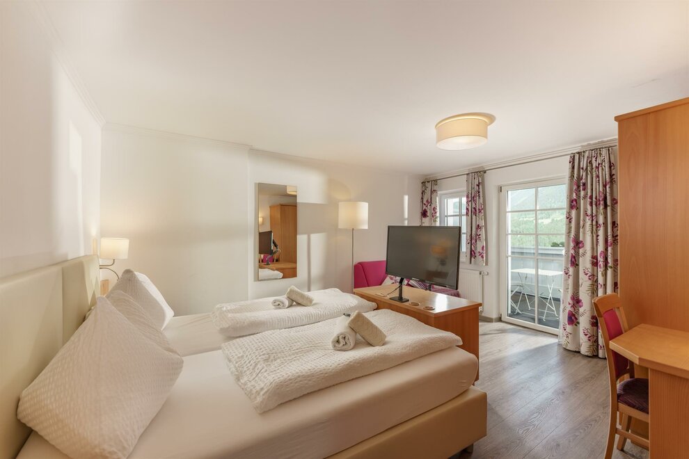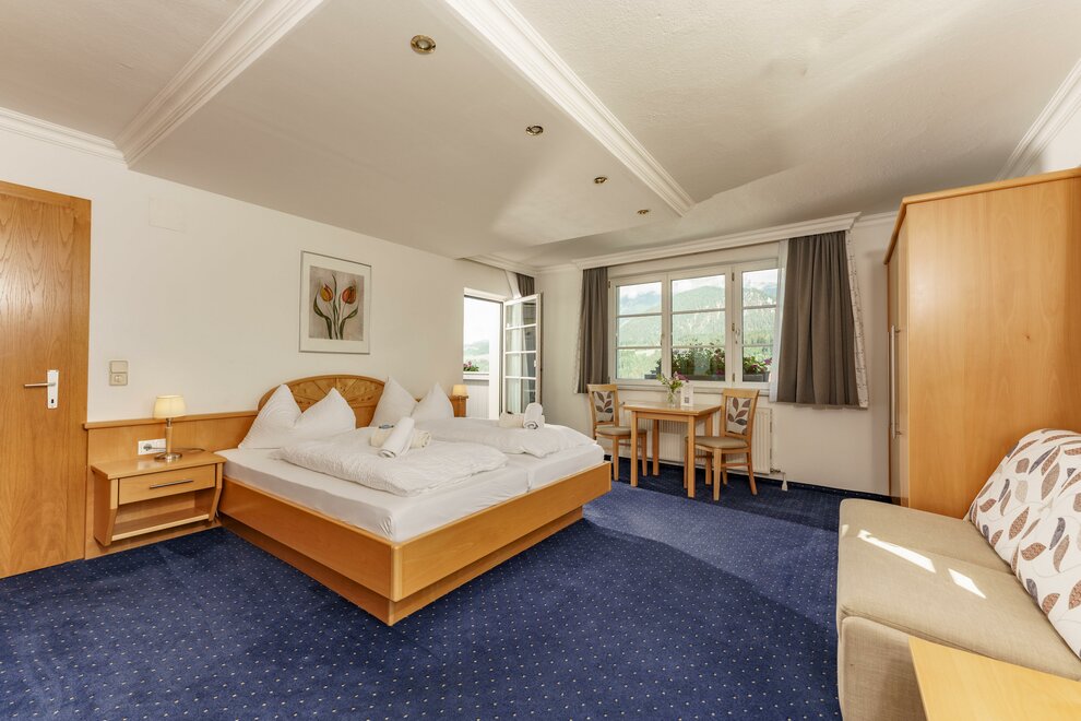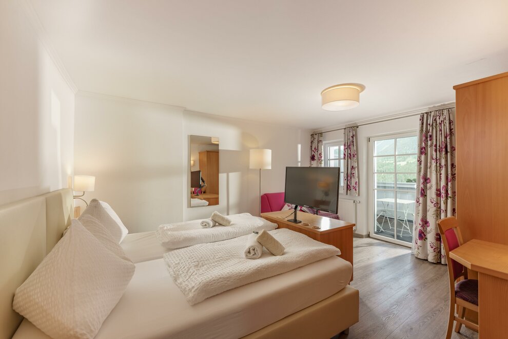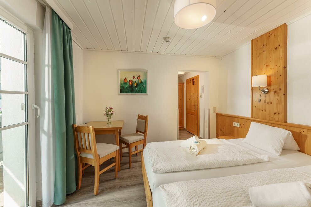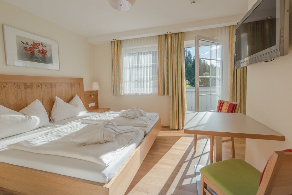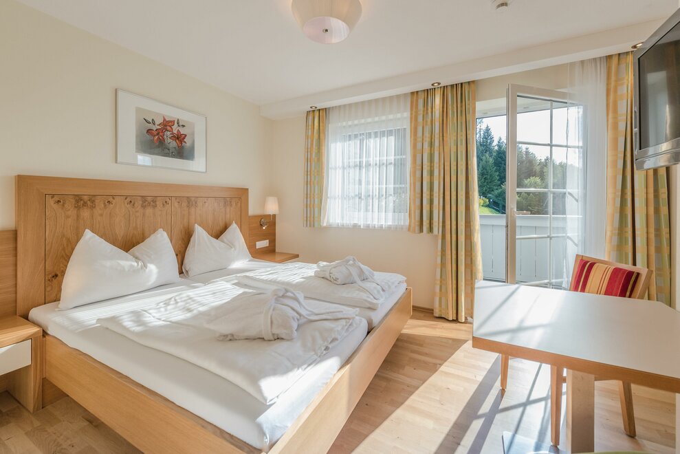 Komfortní pokoje Standard s DU/WC, fénem na vlasy, zdarma W-Lan, plochá TV se satelitním příjmem, balkon, balkonový nábytek. Jednou s výhledem na hory a zahradu (severní strana) jednou s výhledem na jih.