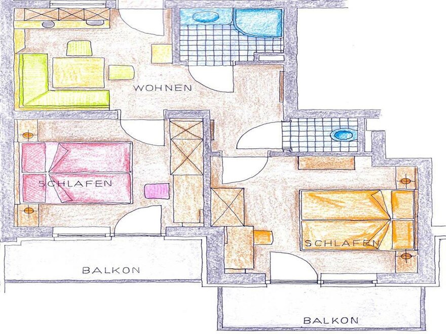 bez koberce, TV, samostatný obytný prostor, předsíň, vlasový fén, ručníky k dispozici, skříň, balkón, mrazicí box, oddělený obýv./ložnice, psací stůl, jídelna, kabelová TV, pokoj/apartmán v tiché zóně, lednice, moderní vybavení nábytkem, koupací plášť na přání, centrální topení, nekuřácký pokoj, rodinný pokoj, povlečení k dispozici, topení, balkonový nábytek, možnost připojení na internet, nový pokoj, WiFi, Größe m²: 46, samostatná ložnice: 2, možnost mražení potravin, pokoj se spojovacími dveřmi, salonek