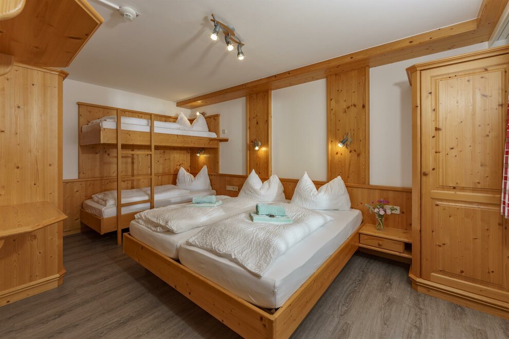Rodinný pokoj se samostatnými ložnicemi, patrovou postelí nebo samostatnými lůžky pro děti, koupelna/WC, fén na vlasy, bezplatné Wi-Fi, částečně s 2x plochou TV s kabelovým příjmem, balkon, balkonový nábytek.