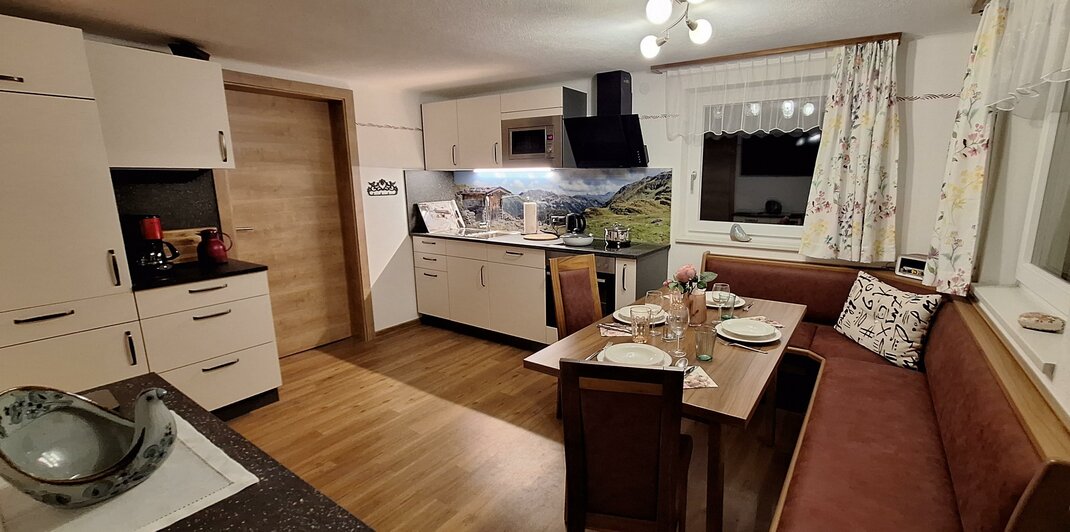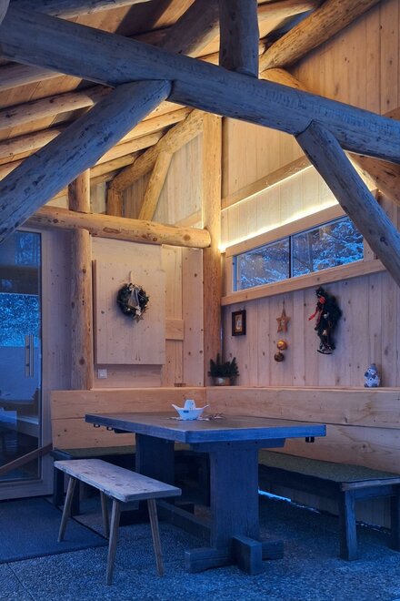 Plně vybavená kuchyň a útulný obývací pokoj nabízejí všechny pohodlí pro relaxační pobyt. Po dni na svahu nebo na túře si můžete odpočinout v venkovní sauně nebo si užít výhled z zahradní chatky.