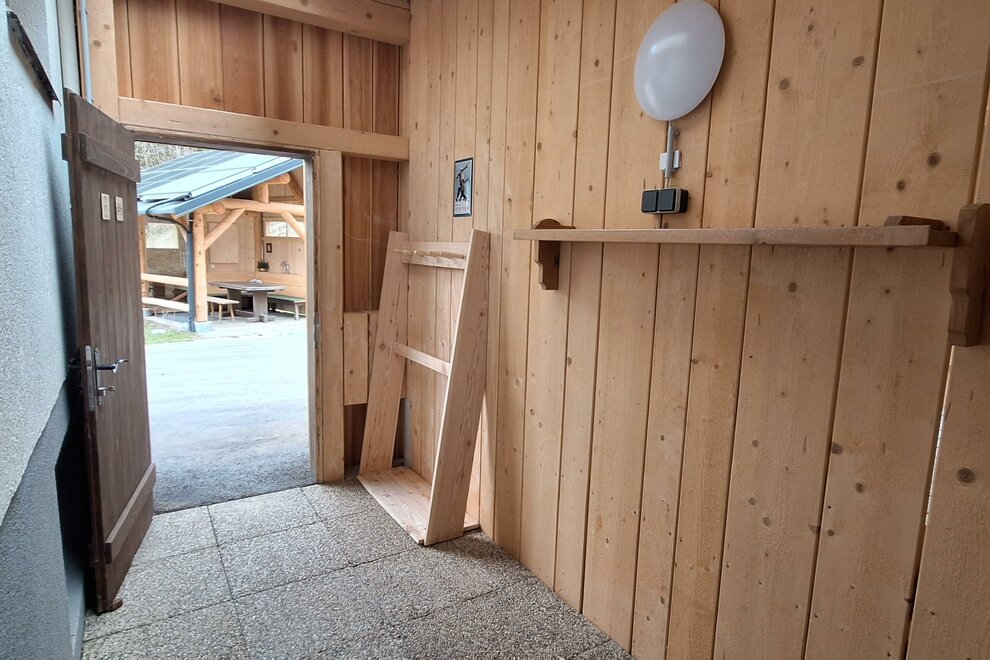 Úložný prostor pro lyže a kola poskytuje dodatečné pohodlí, zatímco sušička na boty zajišťuje, že vybavení po dni na svahu, na kole nebo po túře zůstane suché.