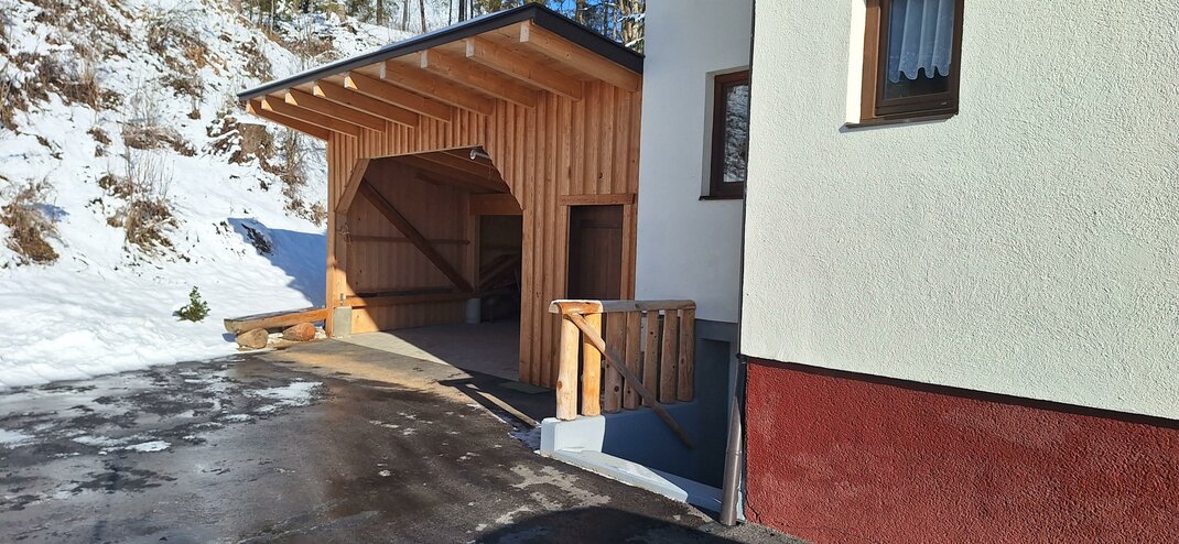 Carport nabízí komfortní možnosti parkování a chrání auto před vlivy počasí. Chalet Lärchforst je tak ideálním místem pro nezapomenutelnou dovolenou v oblasti Schladming-Dachstein.