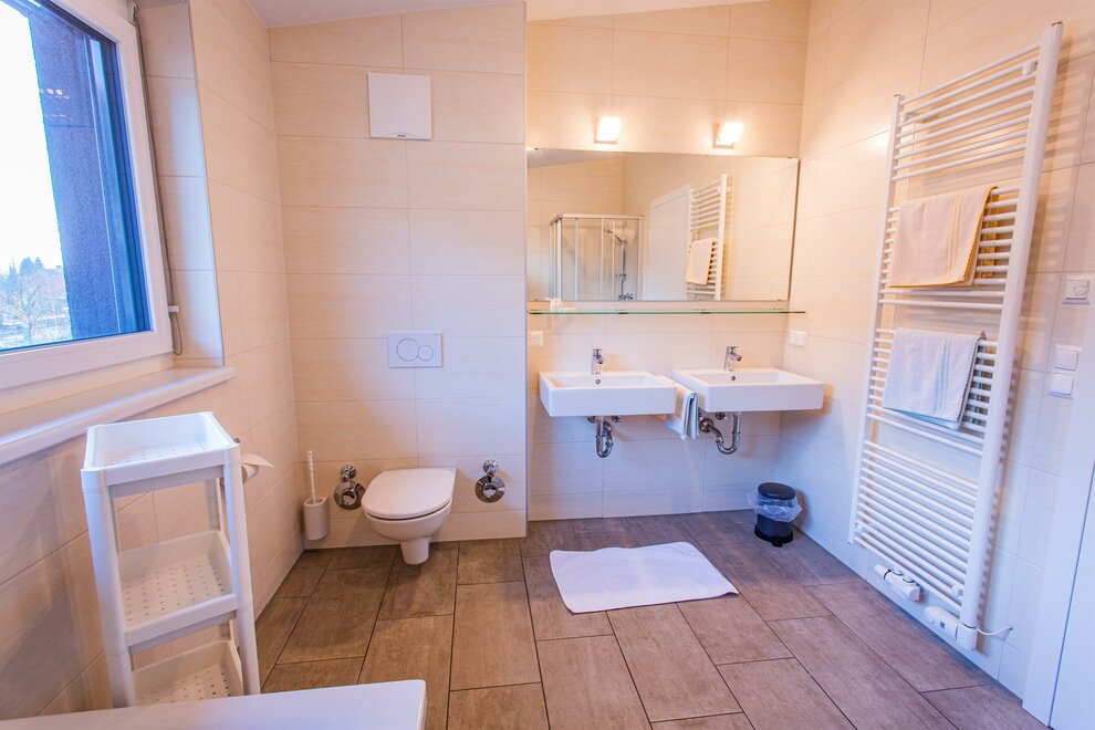 WC, umyvadlo, sprcha, koupelna, WC, sprcha, WC, počet koupelen: 1, počet toalet: 2, oddělené WC, koupelna, dvojité umyvadlo, koupací vana