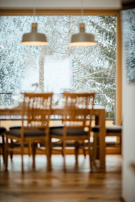 Impozantní architektura se setkává s trendem a tradicí. Velká panoramatická okna s výhledem na okolní horskou krajinu, vysoké a stylově zařízené prostory, stejně jako láska k detailům nechávají srdce hostů bít rychleji.