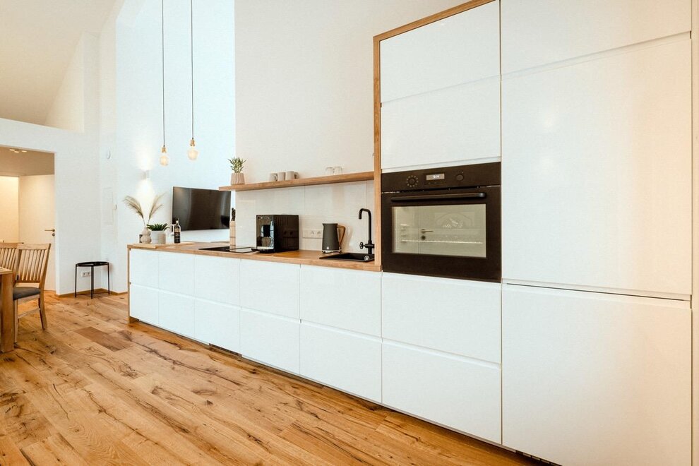 nádobí k dispozici, toustovač, balkón, pokoj/apartmán v tiché zóně, varná konvice, moderní vybavení nábytkem, WiFi, lednice, pokoj chráněný před hlukem, ručníky k dispozici, využití pračky, luxusní nábytek, myčka nádobí, terasa, mikrovlnná trouba, topení, obytná kuchyň, vlasový fén, dřevěná/parketpvá podloha, TV, lodžie, elektrický krb, Größe m²: 60, základy (Ručníky, povlečení, mýdlo a toaletní papír), kávovar, dlažba nebo mramorová podlaha, možnost mražení potravin, kuchyň, předsíň, domácí zvířata po domluvě