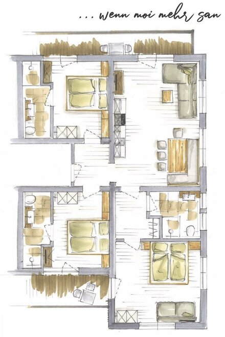 Naše prostorné, komfortně zařízené apartmány s nádherným výhledem na hory jsou ideálním místem pro relaxaci a pohodu.