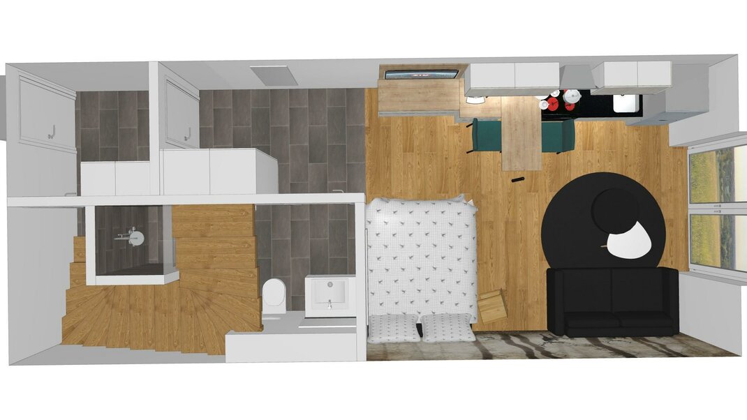 Pro 2 dospělé 2 děti, 33 m² obytné plochy, 2. patro