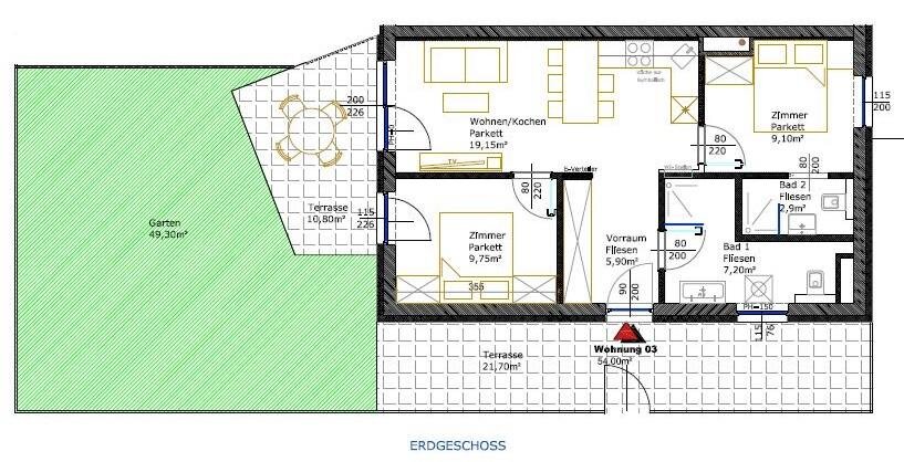 Pro 2-4 osoby, 54 m² obytné plochy, 2. patro