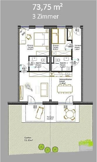 - 30 m² terasa se zahradou & terasovým nábytkem