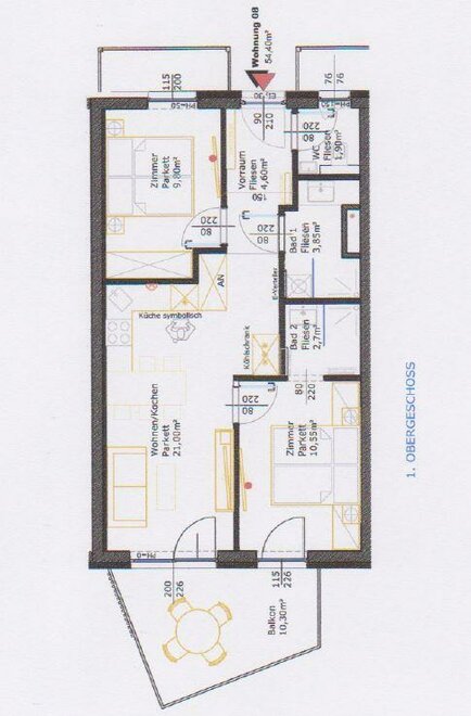 Pro 2-4 osoby, 54 m² obytné plochy, 1. patro