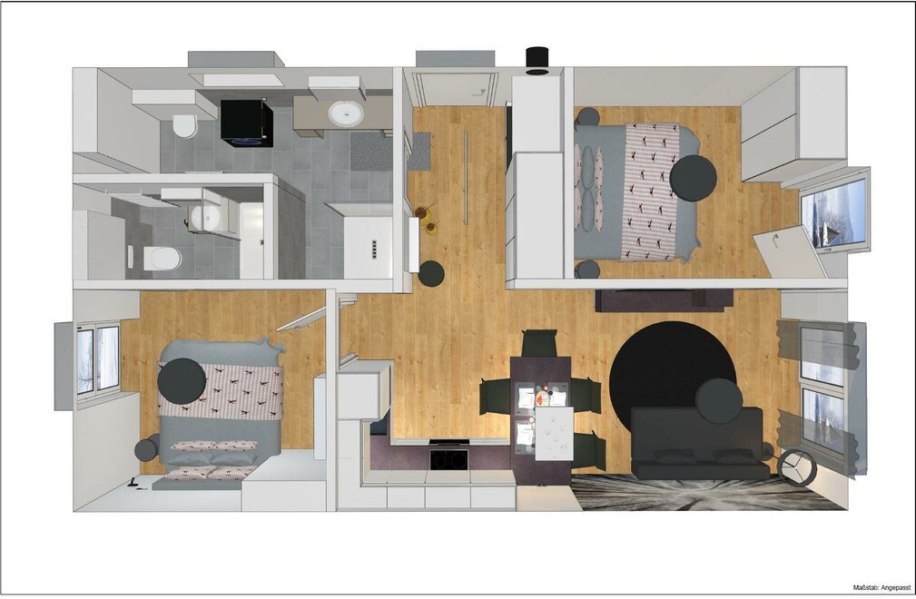 Velikost 54 m² Obsazení 1 - 6 dospělí , 0 - 5 děti Pokoje 3 Ložnice 2 Podrobnosti o pokoji