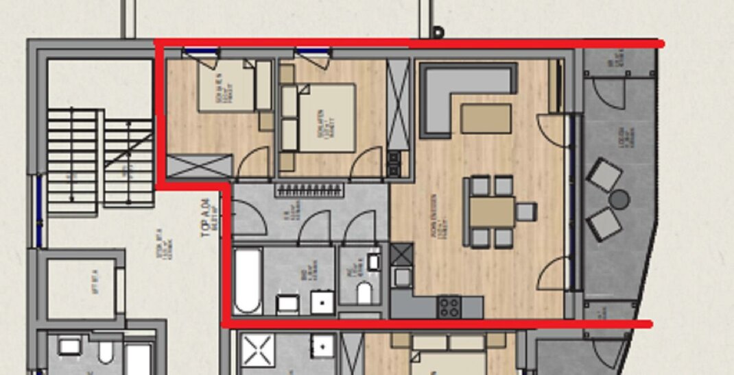 Exkluzivní nové apartmá s možností vlastního stravování vás očekává s prostorným obývacím pokojem, plně vybavenou kuchyňí a jídelním koutem. Ubytování má 3 ploché kabelové televize, 2 dvoulůžkové pokoje, 1 koupelnu se sprchou a samostatné WC.