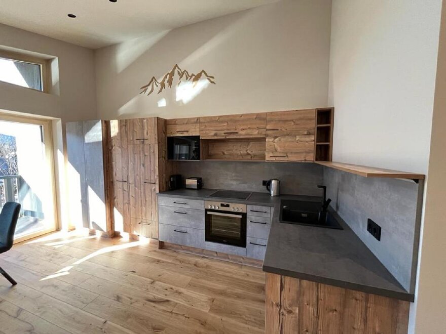 kuchyňské nádobí, centrální topení, myčka nádobí, domácí zvířata po domluvě, nádobí k dispozici, trouba, moderní vybavení nábytkem, elektrický krb, bez koberce, samostatná ložnice: 2, lednice, TV, nový pokoj, obytná kuchyň, mrazicí box, základy (Ručníky, povlečení, mýdlo a toaletní papír), oddělený obýv./ložnice, Größe m²: 65, kávovar, možnost vaření, nekuřácký pokoj, mikrovlnná trouba, dřez na mytí nádobí, dřevěná/parketpvá podloha, kuchyň
