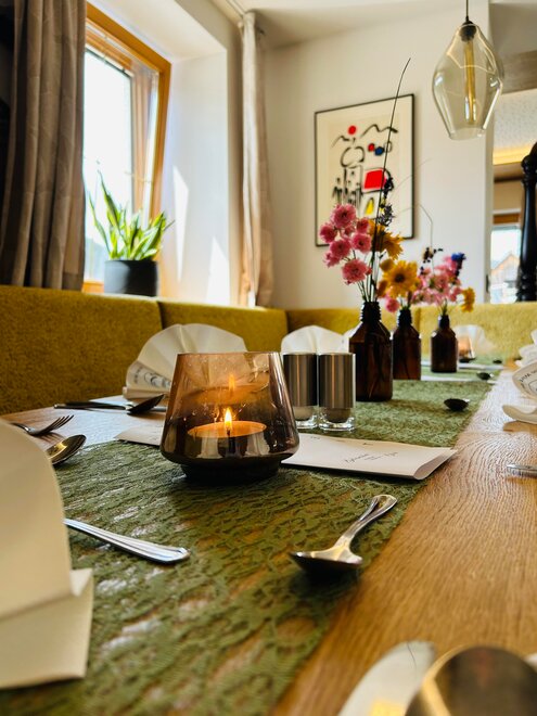 Začněte svůj den dovolené na našem bohatém snídaňovém bufetu. V naší à la carte restauraci připravujeme čerstvé a pestré speciality. Hýčkáme vás kulinářskými lahůdkami z regionálních produktů.