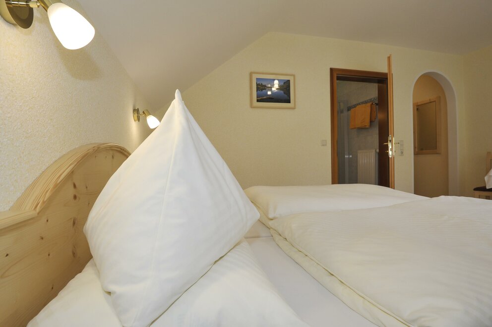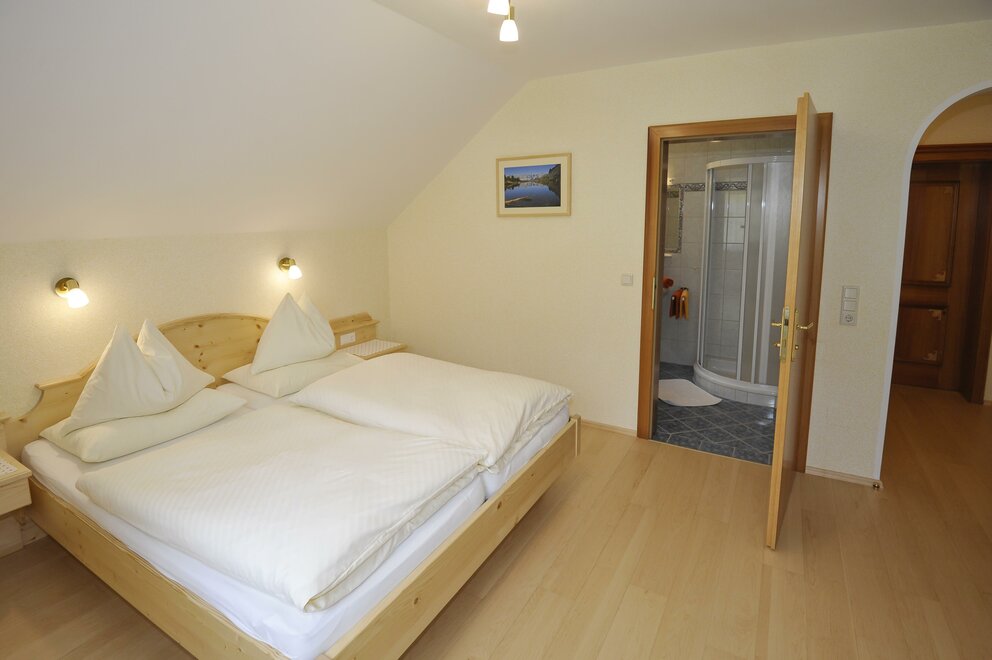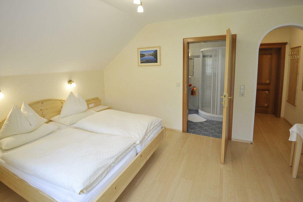 Pohodlně zařízený komfortní rodinný pokoj s sprchou/WC, satelitní TV, balkonem, parketovou podlahou. Dětský pokoj je oddělen od rodičovského pokoje spojovacími dveřmi.