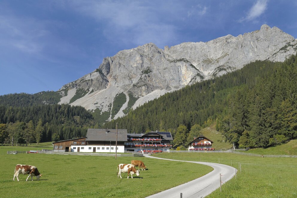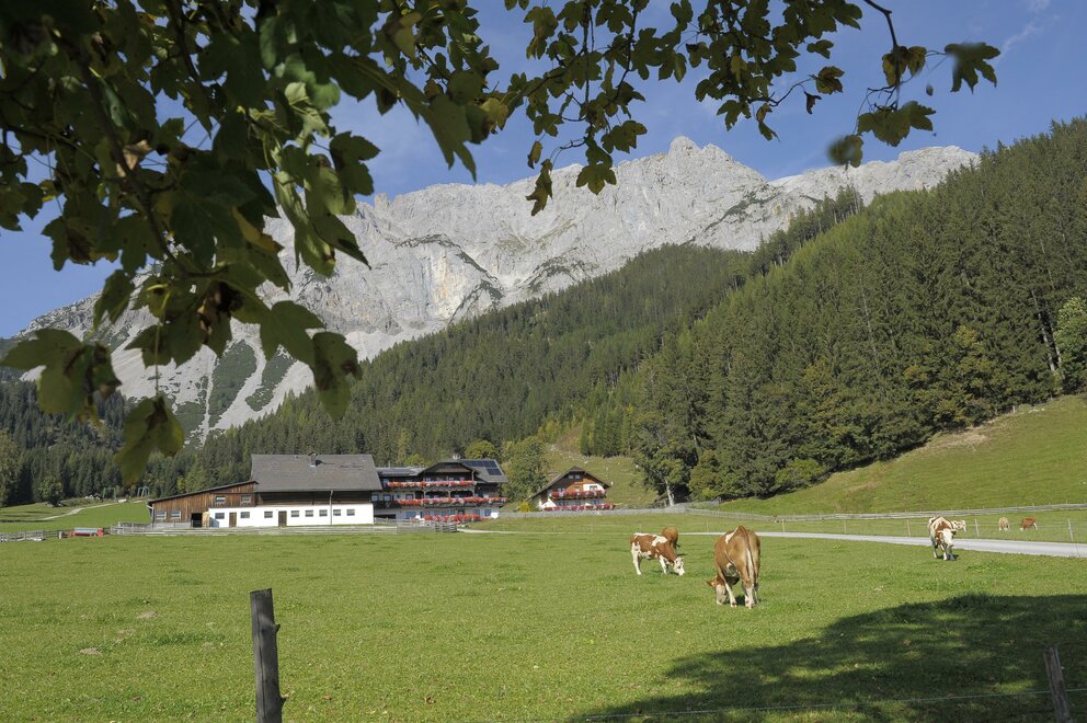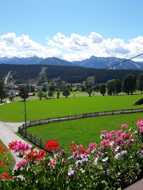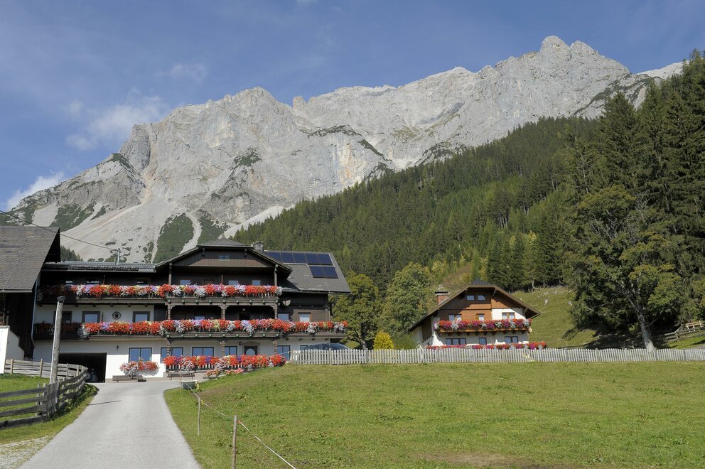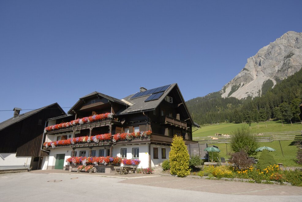 Relaxujte a odpočiňte si s námi na Feichtlehnerhofu v Ramsau am Dachstein. Náš tradičně vedený statek se nachází na centrálním místě nad Ramsau Ort, v prostředí slunných luk na vysočině s výhledem na WM skokanské můstky, okolní horský svět Dachstein a Schladminger Tauern. Centrum obce Ramsau am Dachstein je vzdáleno pouze 10 minut chůze a nabízí vedle supermarketu také řadu hospod a restaurací. Náš statek je v létě ideálním výchozím bodem pro turistiku, příjemné procházky a náročné horské a ferratové túry k nedalekým chatám v horské oblasti a vrcholům Ramsau am Dachstein. Nechte své auto na prostorném parkovišti před domem a vydejte se na túry nebo různé horské cyklotúry přímo z domu. V zimě je Ramsau am Dachstein nádherným zimním sportovním rájem s krásnými běžeckými tratěmi, širokými zimními turistickými cestami a rodinám přátelským ski areálem Ramsau am Dachstein. Přímo vedle našeho domu se nacházejí dvě lyžařské vleky, Bergkristall a Klanglift, které jsou zvlášť vhodné pro děti a začátečníky. Rittisberg je vzdálen 5 minut jízdy autem a lyžařský areál Ski amadé můžete dosáhnout bezplatným skibusem za 20 minut jízdy. Nabízíme našim hostům světlé, kvalitním dřevěným nábytkem zařízené jednolůžkové, dvoulůžkové, třílůžkové a prostorné rodinné pokoje. Všechny láskyplně zařízené pokoje (některé s balkonem) disponují satelitní TV, W-Lan (na přání) a moderní koupelnou se sprchou a WC. Na snídani čeká na stole bohatý a pestrý snídaňový bufet se čerstvým mlékem, tvarohem, pomazánkami a domácím chlebem z našeho statku. Müsli koutek s mnoha různými cereáliemi doplňuje nabídku. Pro naše aktivní turisty nabízíme po dohodě snídani pro horolezce, abyste mohli začít den posíleni. Naše dvě nekuřácké obytné místnosti jsou pečlivě zařízeny s láskou k detailu a zvou k příjemným chvílím relaxace nebo výměně novinek. V zimě a během chladnějších letních dní přináší u dřevem vytápěného kachlového sporáku v borovicové místnosti příjemné teplo a útulnost. Druhá místnost je také zařízena z přírodního smrkového dřeva. Ukončete svůj zážitkový den v nově zřízeném wellness centru, které disponuje finskou saunou, bio parní saunou nebo infrasaunou. V letních měsících mají naši hosté k dispozici kolem domu travnatou plochu s lehátky a prostornou slunečnou terasu pro relaxaci. Pro děti je zvláštním zážitkem, když se mohou podílet na každodenní práci ve stáji, jako je dojení krav nebo krmení jehňat. Na dětském hřišti s houpačkami, pískovištěm a trampolínou je spousta místa na hraní a dovádění. Těšíme se, že vás brzy přivítáme na našem statku Feichtlehnerhof v Ramsau am Dachstein! Vaše rodina Fuchs-Wieser