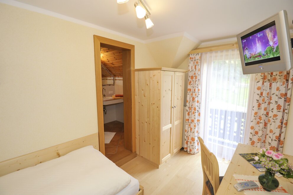 Útulně zařízený jednolůžkový pokoj s vanou/WC, satelitní televizí, parketovou podlahou, částečně balkonem