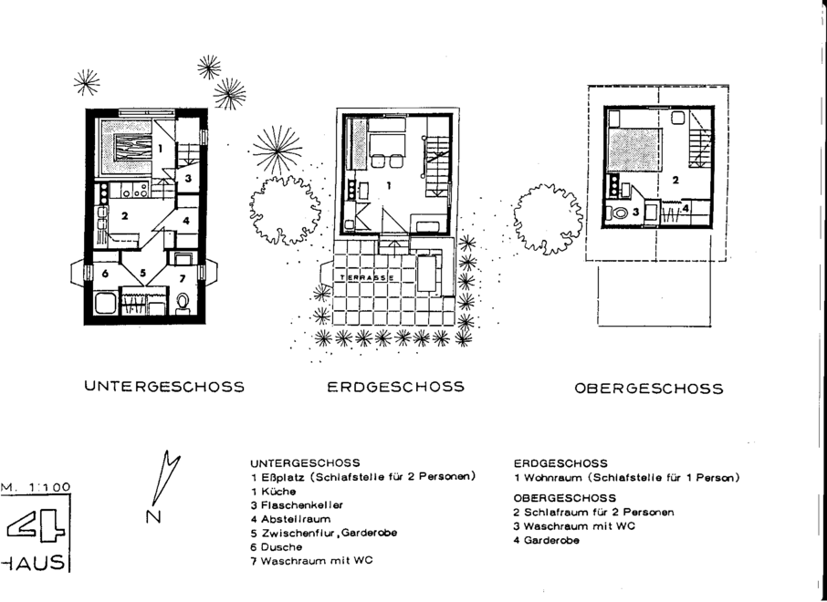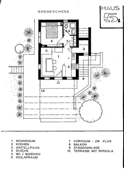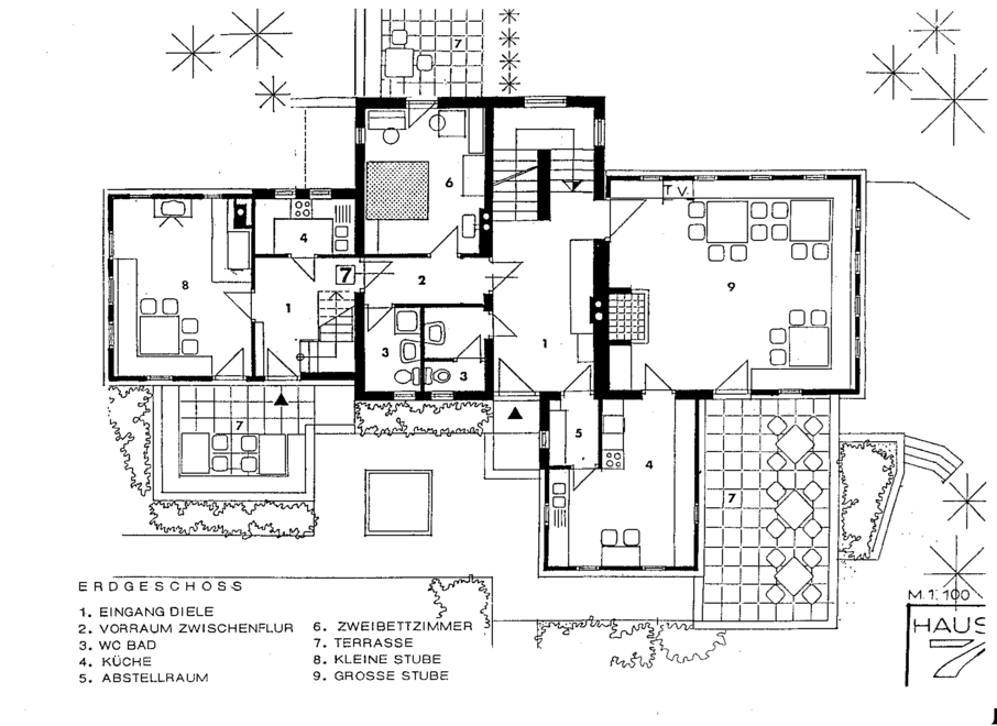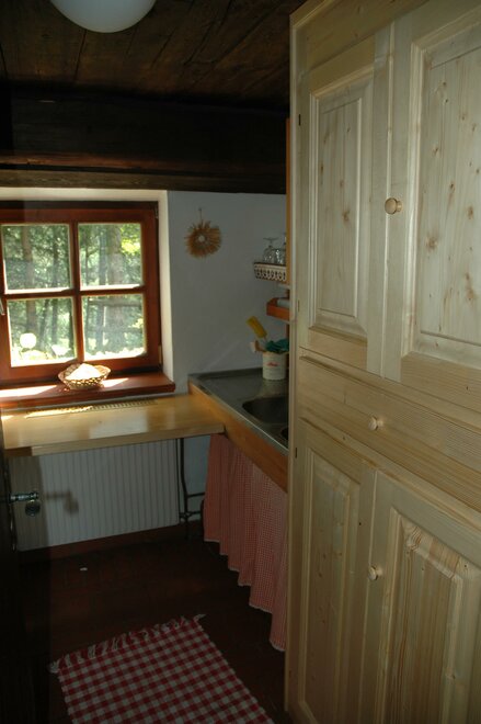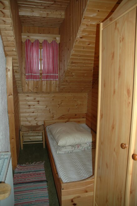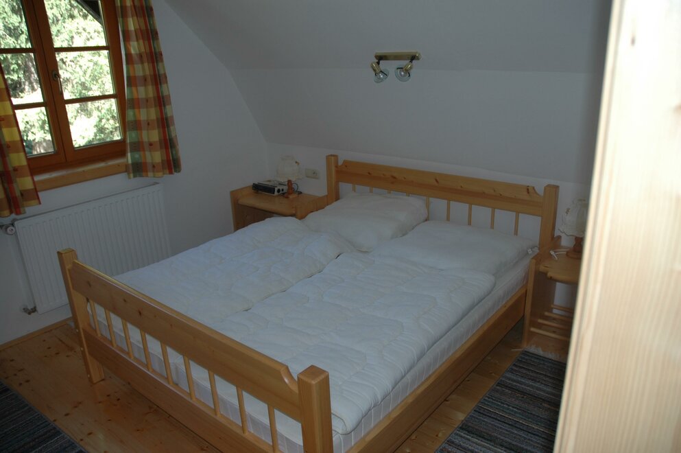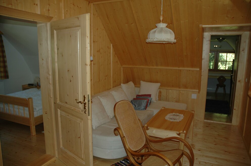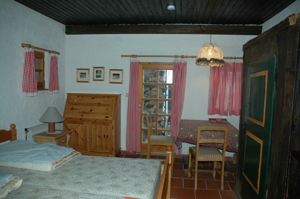 Byt pro max. 2 osoby - zvlášť krásné vybavení: obývací pokoj s velkým jídelním stolem, kuchyň, TV s videopřehrávačem, ložnice pro 2 osoby, sprcha/WC, sklad, terasa před domem.