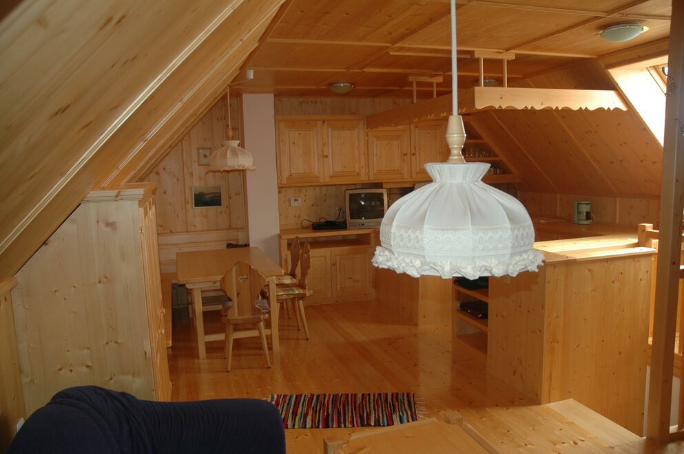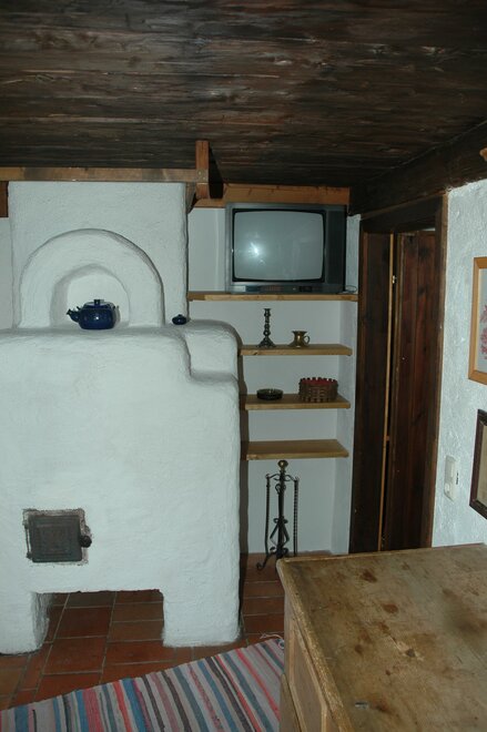možnost mražení potravin, kávovar, dřez na mytí nádobí, TV, kachlová kamna, nádobí k dispozici, rustikální nábytek, toaletní potřeby, lednice, oddělený obýv./ložnice, prostírání a prádlo do kuchyně, salonek, balkón, ručníky k dispozici, povlečení k dispozici, elektrický krb, kuchyňský kout