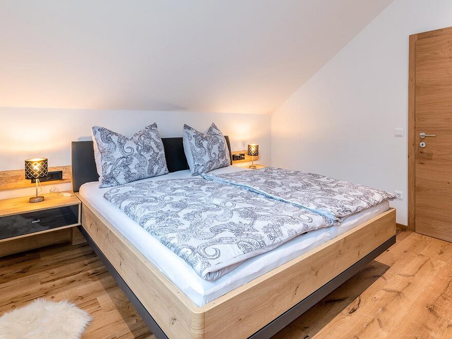 V přízemí se nachází útulně zařízená ložnice, která je velmi pohodlně přístupná bezbariérově. Při vybavení bylo dbáno na vysoce kvalitní přírodní materiály a příjemný prostorový komfort.Dvě ložnice v patře