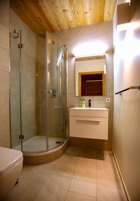 Nově postavený rekreační dům navržený Volkerem Hagnem nabízí čistý luxus přímo na běžecké trati. Pravděpodobně nejmodernější rekreační dům sportovní oblasti Ramsau Dachstein se nachází v Pichl Vorberg ve výšce 1.100 m a díky svému stavebnímu stylu se jedinečně začleňuje do ohromující horské krajiny. Rekreační dům nabízí na 300 m² obytné plochy místo pro až 10 osob ve 4 ložnicích. V zimě leží běžecké tratě u vašich nohou a v létě se před domem nacházejí cyklostezky a různé turistické trasy. Po sportovních aktivitách zve vlastní yoga studio a naše sauna spolu se sluneční terasou před nádhernou kulisou k relaxaci a snění. Z Schladmingu se k rekreačnímu domu dostanete za 10 minut autem. Přímý vstup do běžeckého areálu Ramsau a zastávka skibusu pro nástup na "4 hory - lyžařské kolotoče".