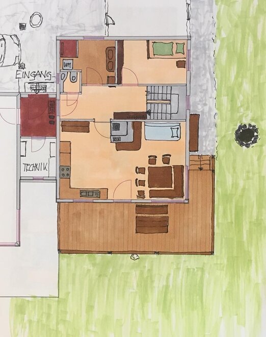 Tichý a slunný na jižním svahu Kammspitz. Dřevěný dům s ekologickými a přírodními stavebními materiály. Prostorná terasa s výhledem na západ. Celoročně ideální jako výchozí bod například pro turistiku, horské kolo, horolezectví, sjezdové lyžování, běžecké lyžování nebo paragliding. V přízemí se nachází kuchyň, jídelna, sanitární zařízení a jedna ložnice. V podkroví jsou další ložnice. Jednoduché vybavení.