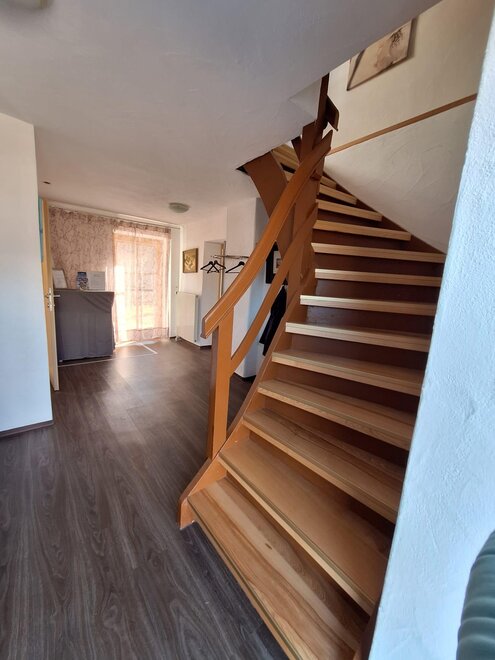 kamna na dřevo, jednoduché vybavení nábytkem, bez koberce, povlečení k dispozici, oddělený obýv./ložnice, kávovar, centrální topení, digestoř, obývací pokoj, store room, jídelna, topení, ručníky k dispozici, kuchyň, terasa, trouba, zahrada, elektrický krb, rodinný pokoj