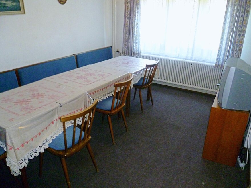 V suterénu je možné uložit lyže a další věci. Vytápění je plně automatické olejové. Před domem je velké parkoviště a krásná zahrada.