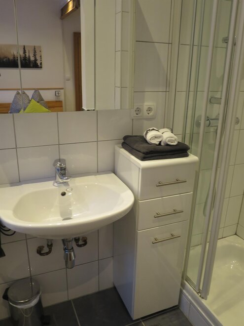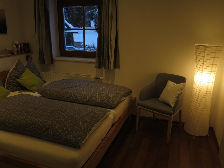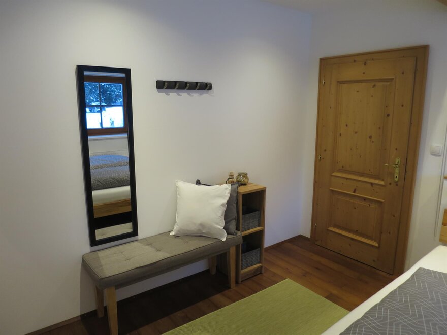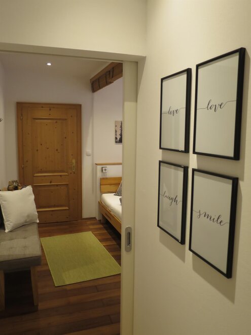 Naše apartmá je vybaveno kuchyní, předsíní, sprchou/WC a se spací a obývací ložnicí a nabízí místo pro 3 osoby. Po domluvě také pro rodiny se 2 dětmi. Na vyžádání vám rádi nabídneme také snídani (10,00 € na osobu).