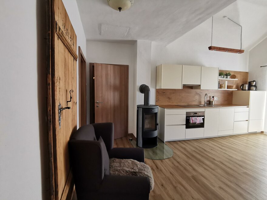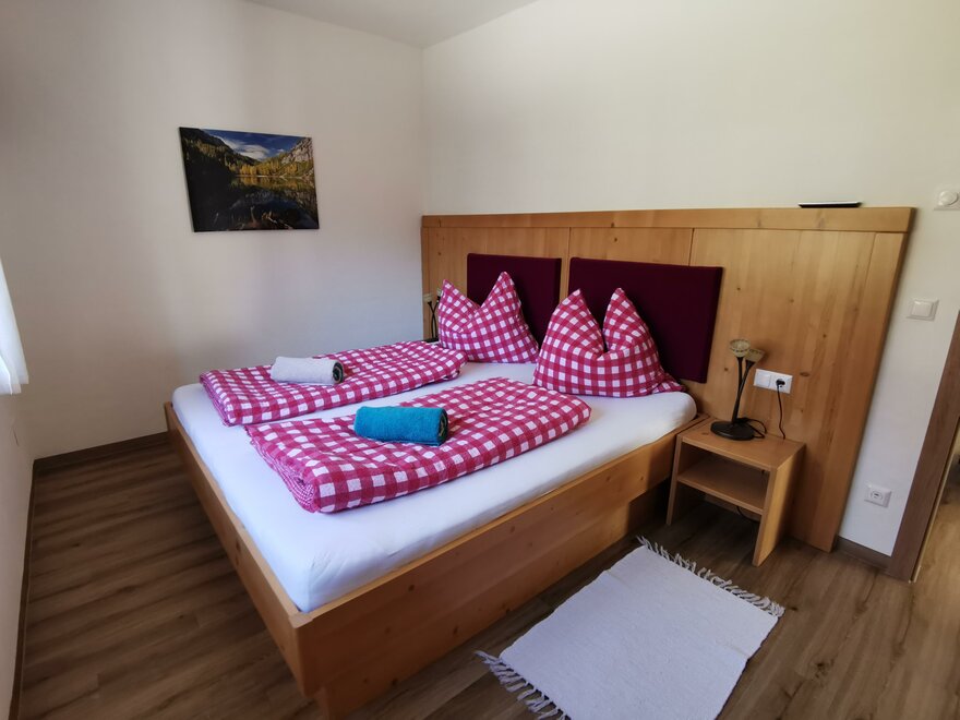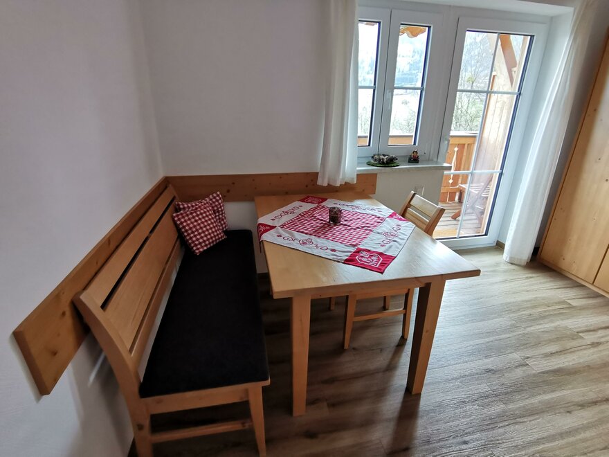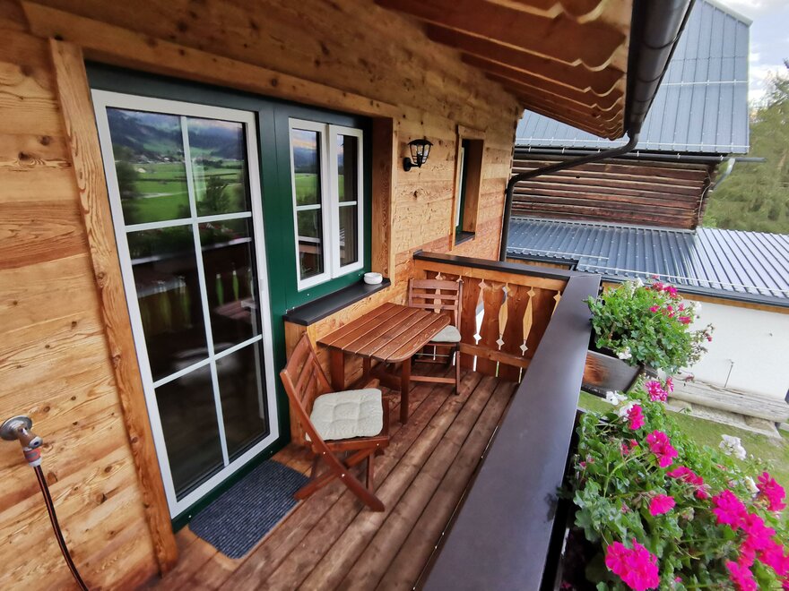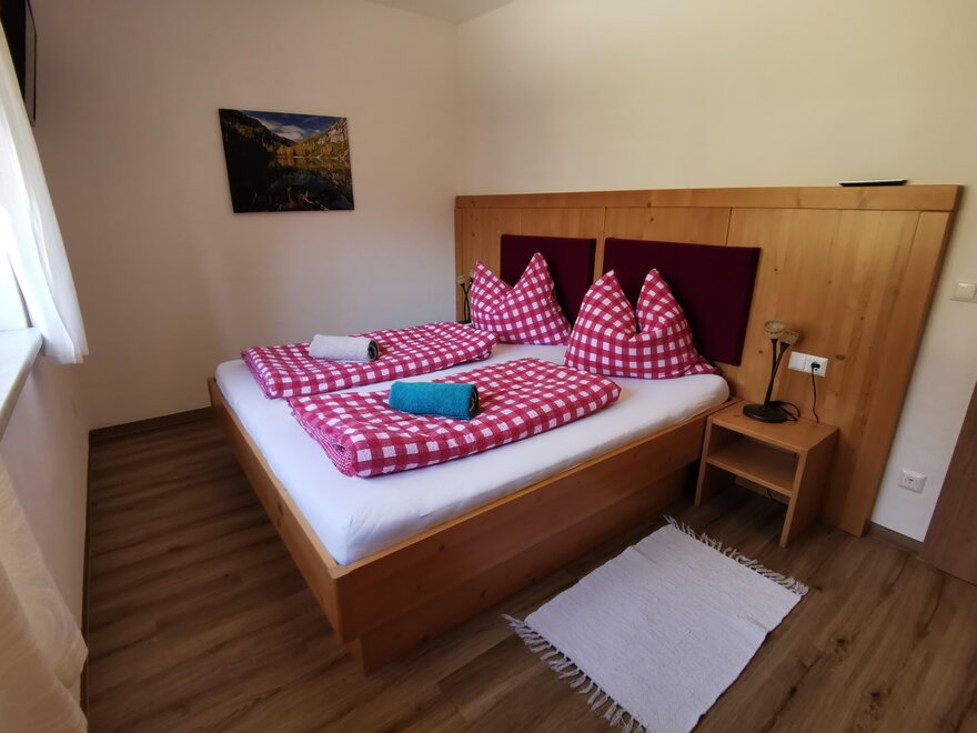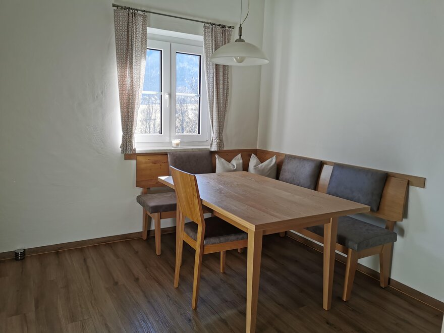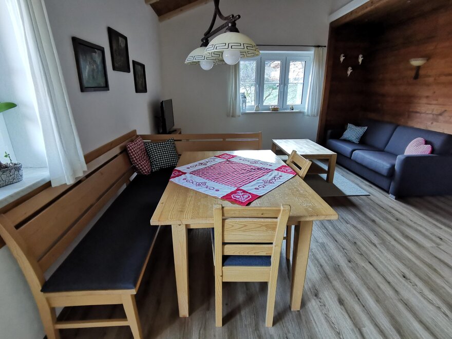 In our third holiday apartment "Zur Jägerin", you can go directly out into the garden and enjoy the view of the Hauser Kaibling with a cozy seating set. The bedroom offers a double bed and additionally a bunk bed for a third or fourth person. With a generous bathroom and a cozy living kitchen, you can spend relaxed holiday days.
