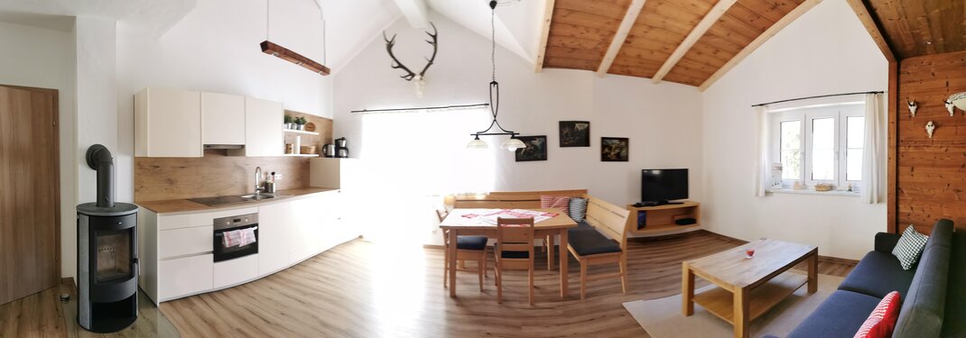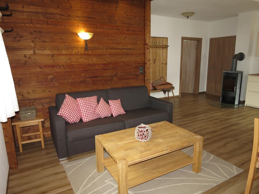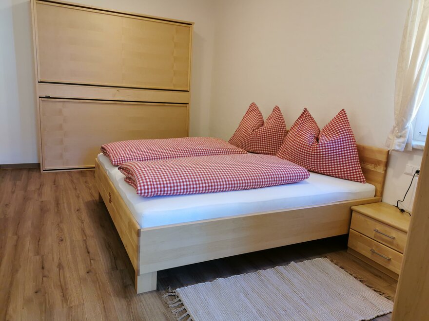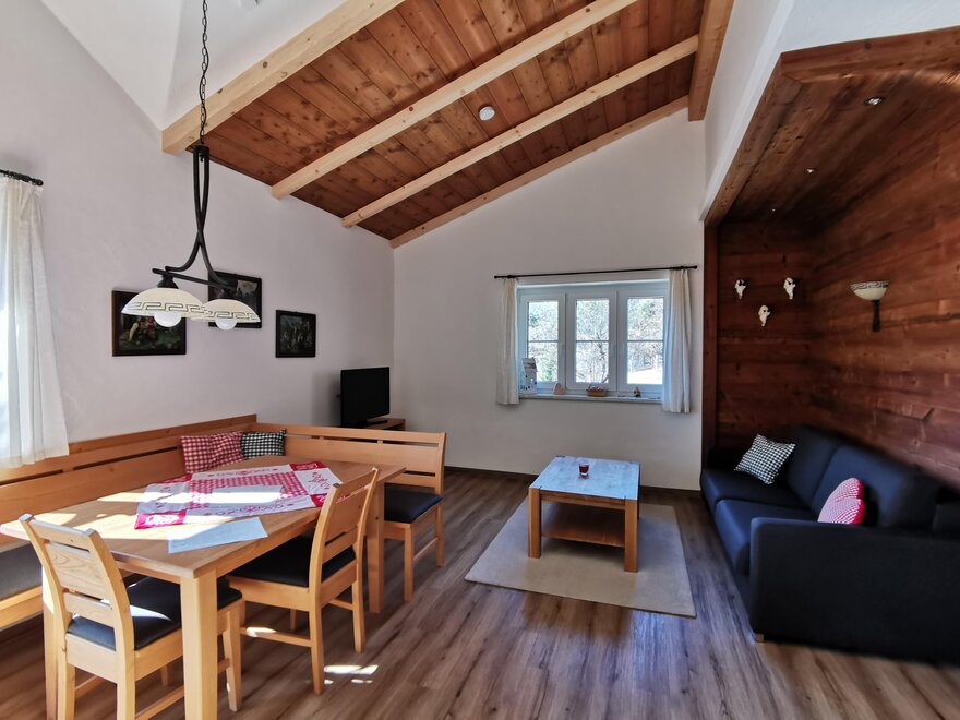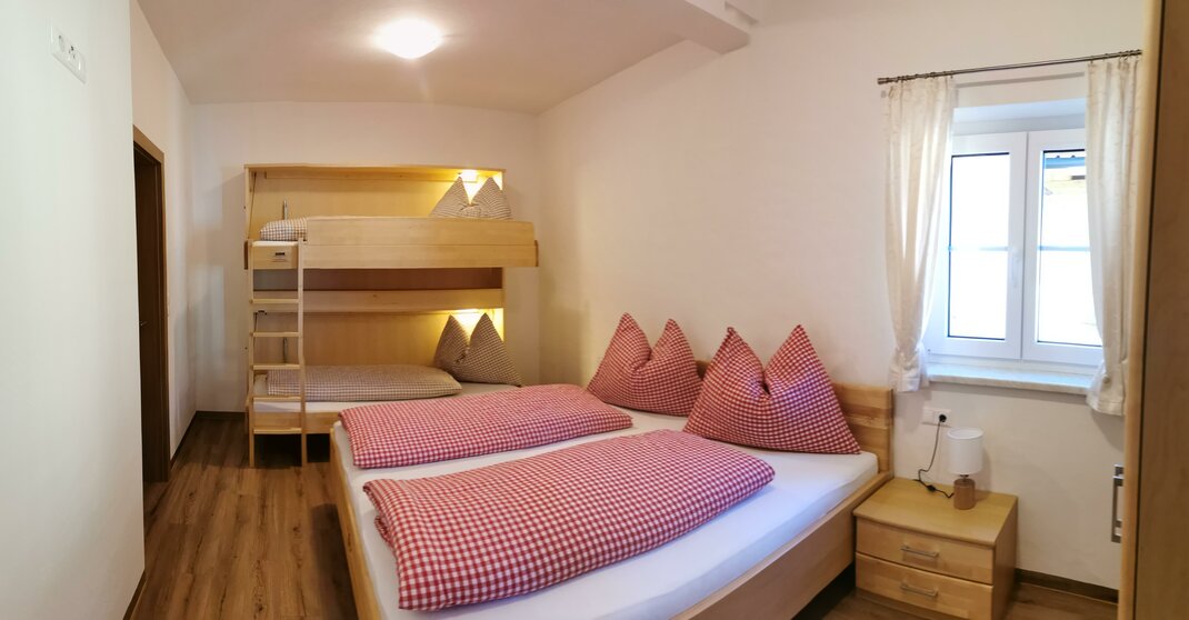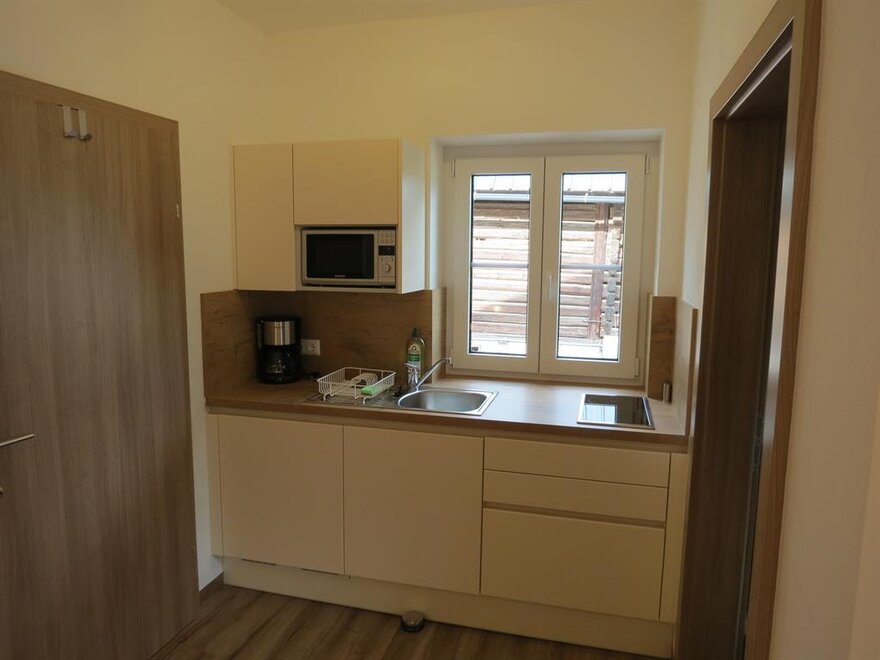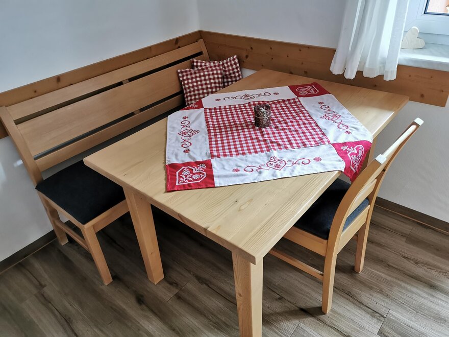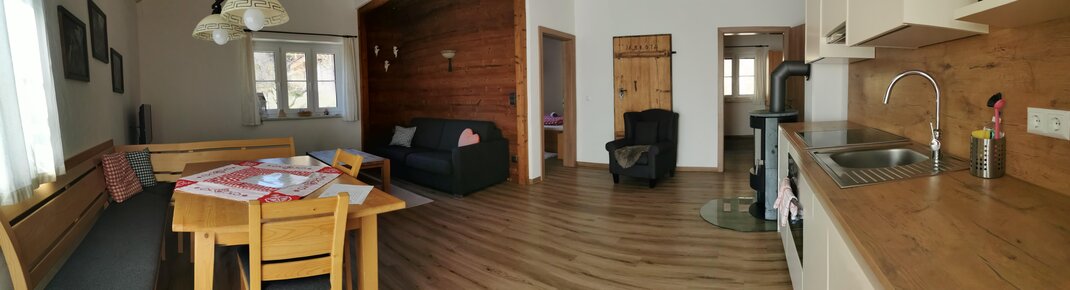 In our third holiday apartment "Zur Jägerin", you can go directly out into the garden and enjoy the view of the Hauser Kaibling with a cozy seating set. The bedroom offers a double bed and additionally a bunk bed for a third or fourth person. With a generous bathroom and a cozy living kitchen, you can spend relaxed holiday days.