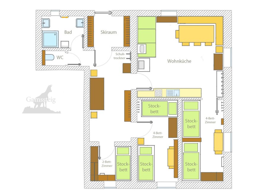 Velký byt pro rodiny až pro 10 osob na dovolené, kterou chcete strávit společně a pohodlně ve velkém obývacím pokoji. Uprostřed vesnice, s využitím zahrady, aby si děti mohly v zimě hrát na sněhu přímo před dveřmi. V teplém, prostorném obývacím pokoji se scházejí všichni rodinní příslušníci, společně vaří nebo si užívají čas spolu.