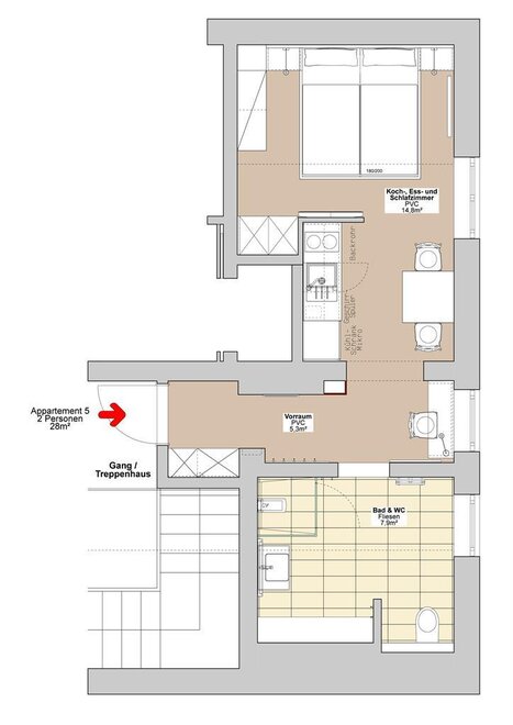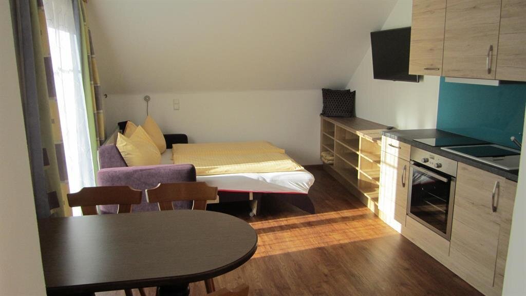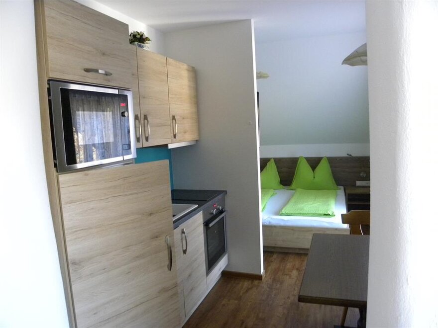 nekuřácký pokoj, vestavěná kuchyň, základy (Ručníky, povlečení, mýdlo a toaletní papír), centrální topení, kávovar, domácí zvířata nedovolena, společný obýv./ložnice, WiFi, prostírání a prádlo do kuchyně, digestoř, moderní vybavení nábytkem, dřez na mytí nádobí, zahradní nábytek, sejf, balkón, trouba, zahrada, nádobí k dispozici, balkonový nábytek, louka, mikrovlnná trouba, Größe m²: 29, psací stůl, bez koberce, předsíň, mrazicí box, topení, vlasový fén, elektrický krb, satelitní TV, studio, pokoj/apartmán v tiché zóně, myčka nádobí, lednice