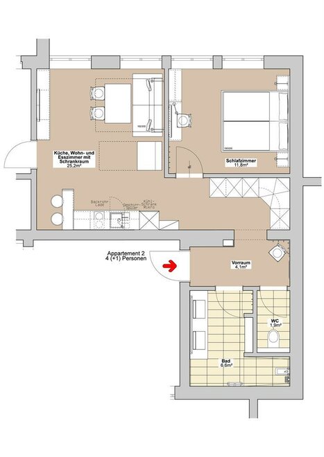 Velikost 40 m² Obsazení 1 - 4 dospělí , 0 - 3 děti Pokoje 1 Ložnice 1 Podrobnosti o pokoji