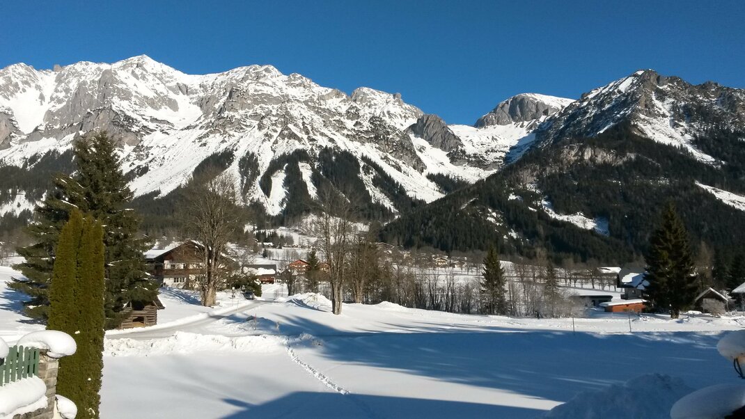 Apartmán Rosemarie: útulný a kompletně vybavený apartmán pro příjemný pobyt; klidná a centrální poloha v Ramsau Kulm. Vlastní vchod, zimní zahrada s nádherným výhledem, myčka, garáž, bezplatné W-lan atd. Pračka a sušička na vyžádání.