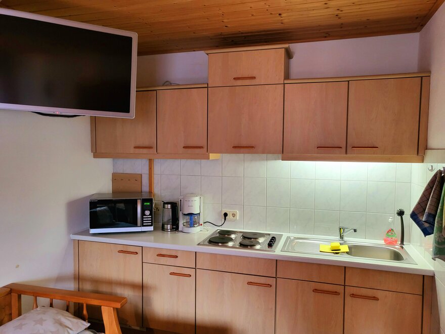 Komfortní a nově zrekonstruovaný apartmán - v útulném "starém" dřevěném domě. Sluneční jižní orientace - klidné místo! 1 ložnice, obytná místnost se zcela vybaveným kuchyňským koutem, jídelní kout, sprcha/WC. Sat-TV. Terasa.