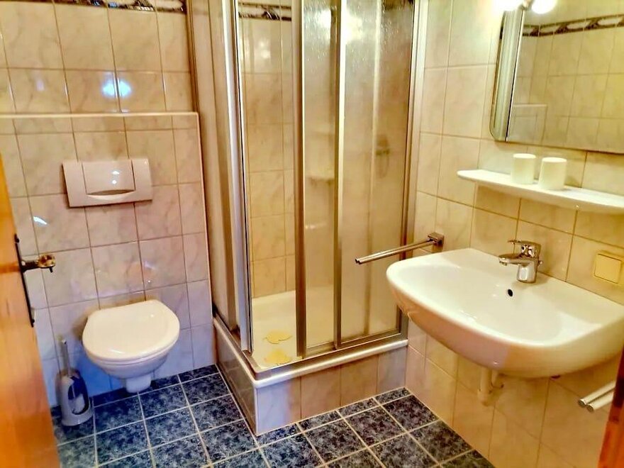 tekoucí studená/teplá voda, sprcha, WC, umyvadlo