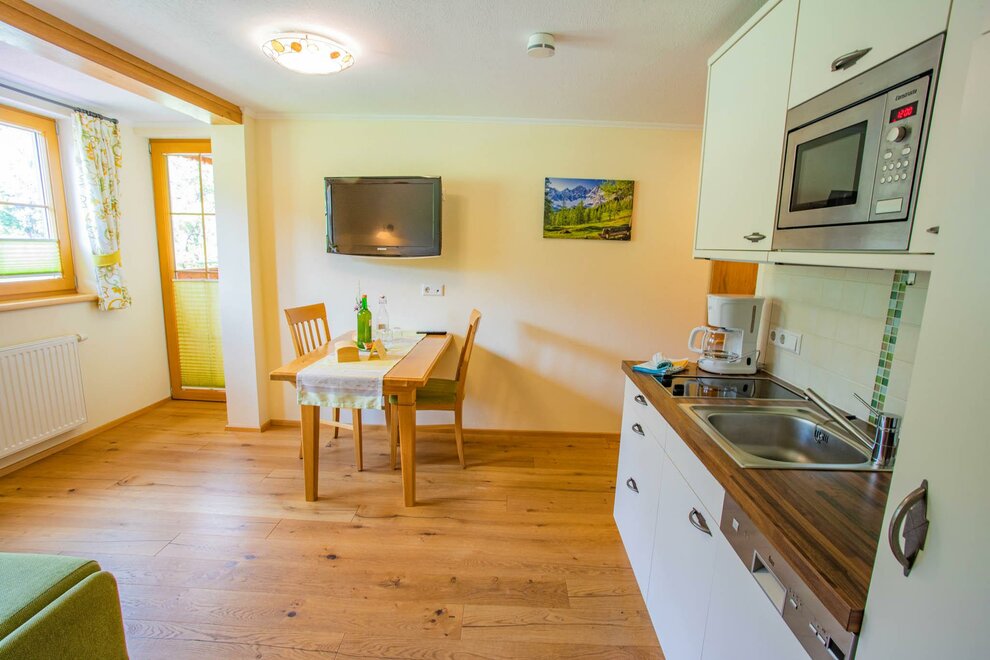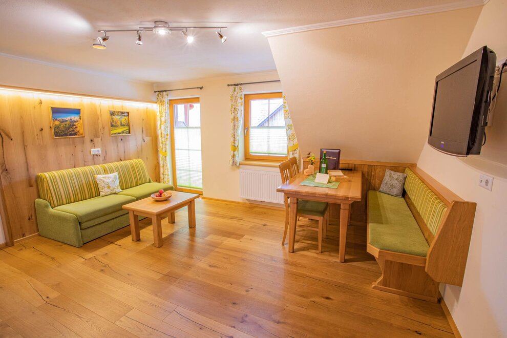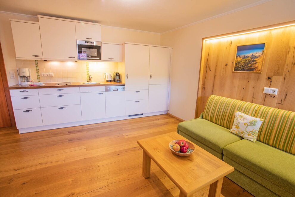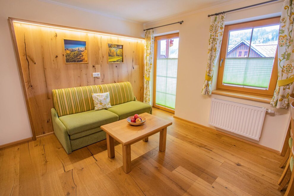 Nabízíme vám čtyři prostorné, 50 až 70 m² velké a láskyplně zařízené apartmány pro 2-6 osob. Každý z apartmánů vás přivítá útulnými ložnicemi, plně vybavenou kuchyní s myčkou nádobí, elektrickým sporákem, mikrovlnnou troubou, kávovarem a vařičem vajec. Světlý a komfortní obývací prostor zve k odpočinku. Užívejte si na zařízeném balkóně nádherný výhled na impozantní horskou krajinu Ramsau am Dachstein.