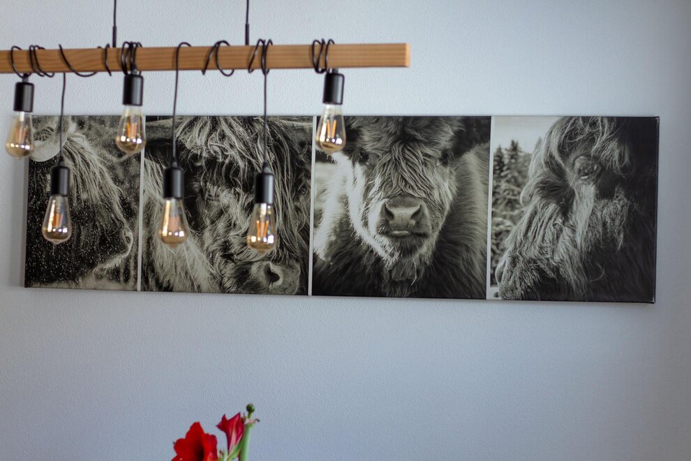 Kromě toho chováme skotská vysokohorská plemena skotu, která se pasou na našich pastvinách a dodávají Fürsterhofu jedinečnou atmosféru. V létě se naše vysokohorské krávy nacházejí na „letním výletě“ v oblasti alpských horských pastvin Ramsau. Kulturní filozofie naší farmy se orientuje na místní a regionální produkty. K posílení pro turistiku nebo jako dárek pro vaše blízké doma si můžete vybrat z pestré škály uzenin a šunkových specialit z vlastní produkce.