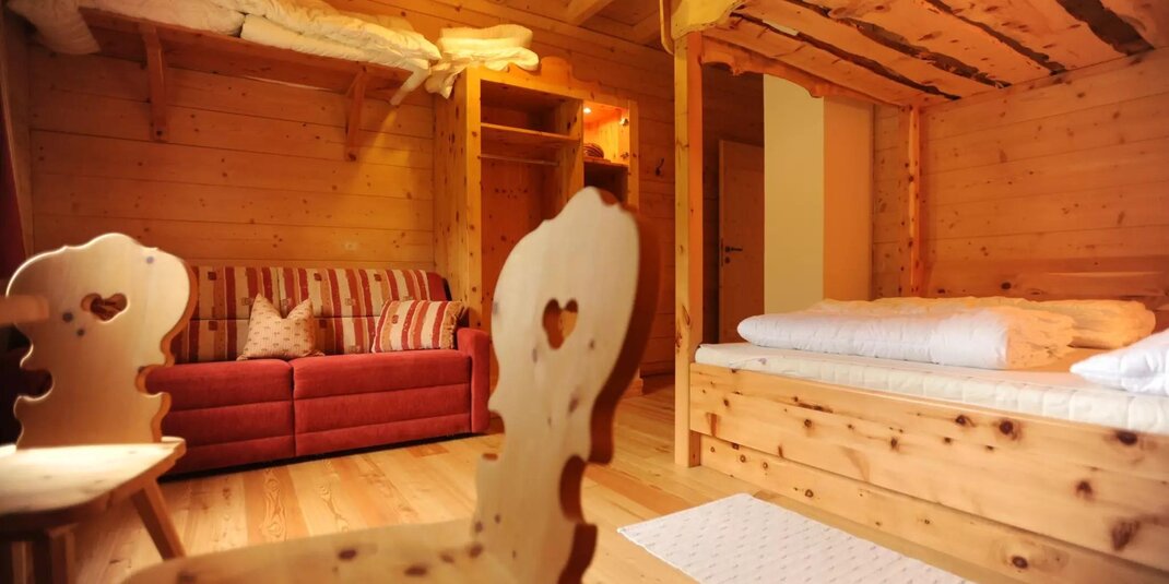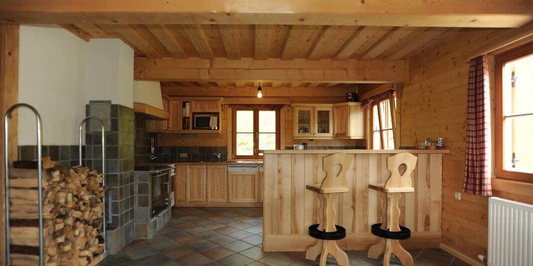 Naše chalupa Almstall je postavena ze dřeva a je velmi útulně zařízena.